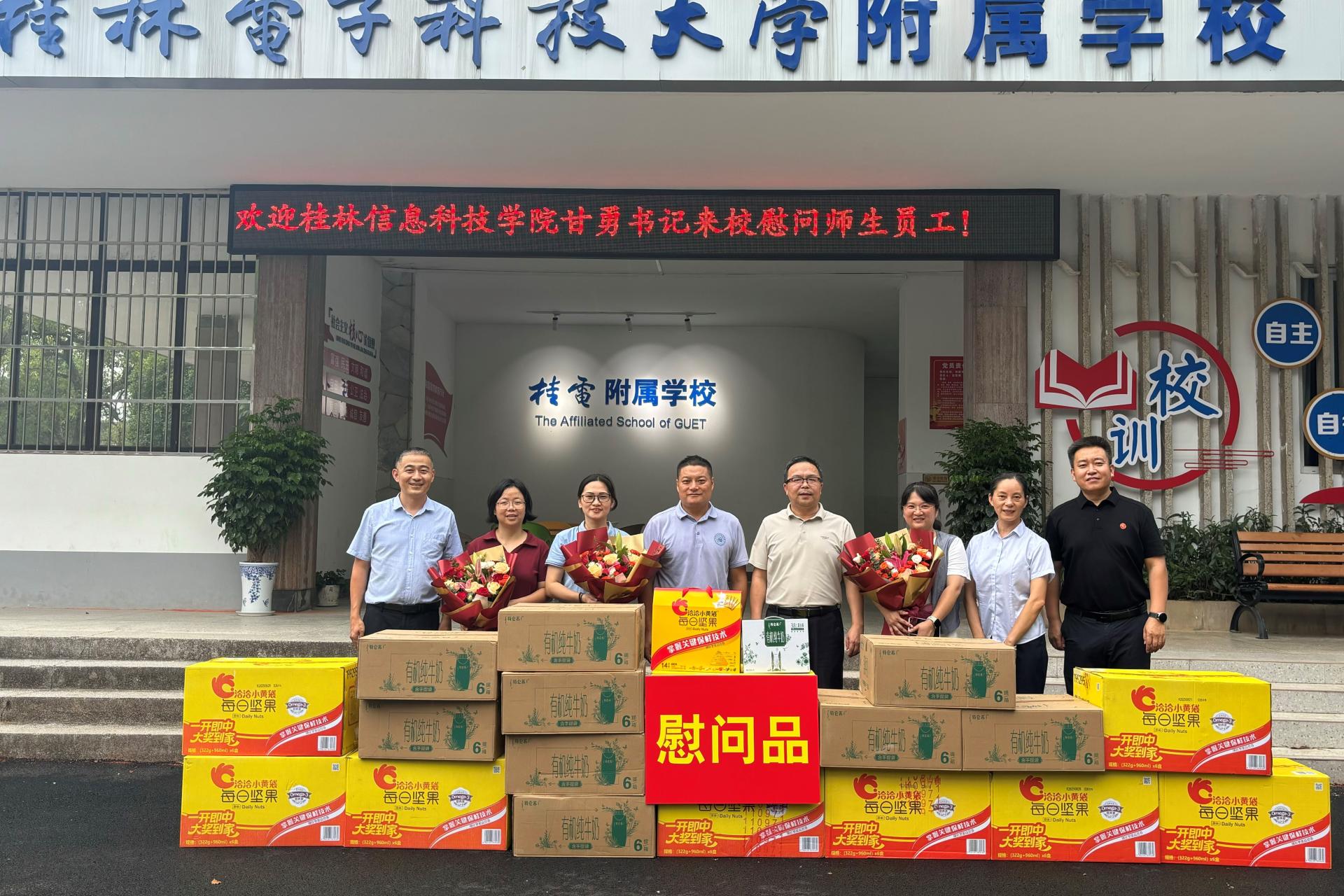 第41个教师节来临之际,9月8日下午,学校党委书记甘勇率慰问团,专程前往桂电附属学校开展教师节慰问活动。桂电附属学校基础教育管理办公室主任杨剑受学校指派,热情地接待了慰问团一行。