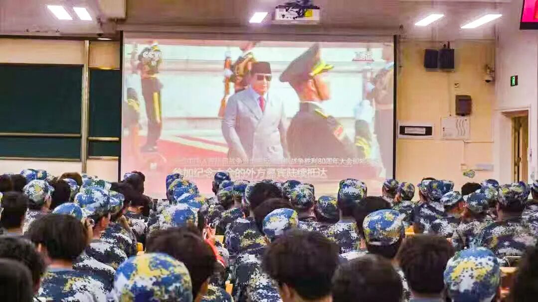 观看过程中,师生们全神贯注,不时为阅兵盛况鼓掌称赞,每个人的脸上都洋溢着由衷的骄傲与感动,浓浓的爱国情怀在每个人心中激荡。