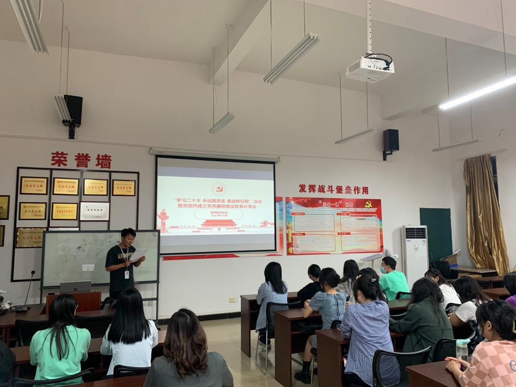 为推进廉洁文化建设,教育引导年轻党员筑牢理想信念根基,营造浓厚的崇德尚廉氛围,10月26日 ,商学院党总支在11501党员活动室组织开展“学习二十大 永远跟党走 奋进新征程”活动暨党团共建之党风廉政建设故事分享会。