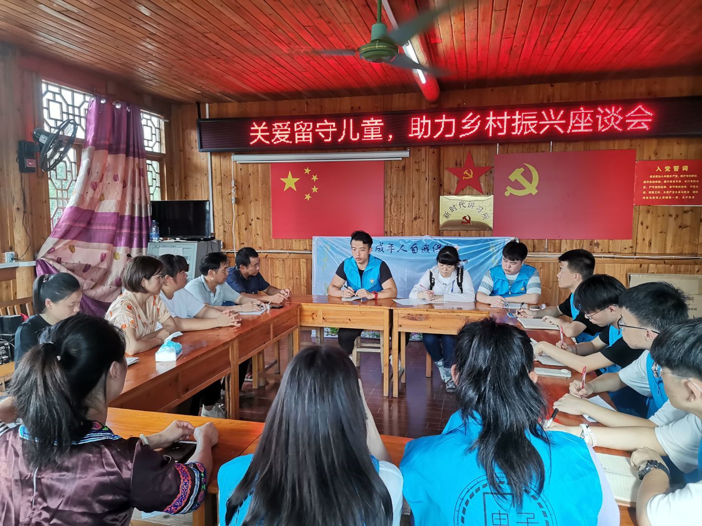 活动期间,志愿团队前往广西三江县红路村开展实践调研,在当地妇联主席的带领下,团队成员与当地村委座谈交流,了解红路村的基本情况,并对当地留守儿童进行安全教育、普法宣传讲解,与孩子们一同完成素质拓展游戏与科学小实验。最后,在村委的协助下,团队成员对多户留守儿童家庭进行了走访。