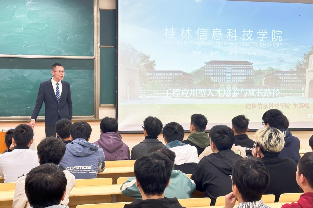 12月8日晚,刘跃峰副校长在敏思楼D207为学生讲授“就业指导”课,机电工程学院2024届专升本毕业生参加。