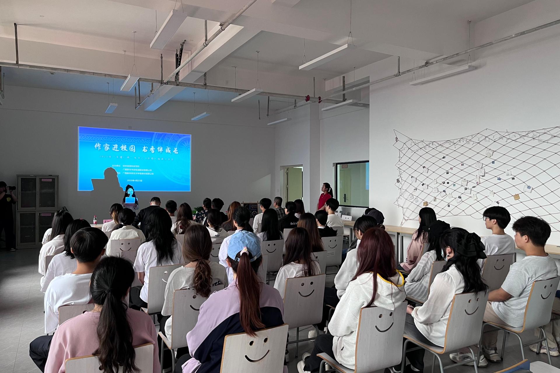 在庆祝第30个“世界读书日”之际,4月23日上午,广西新华书店集团股份有限公司向纽约国际官网捐赠2400余册珍贵图书,图书捐赠仪式暨阅读分享活动在知行楼621室举行,广西新华书店集团股份有限公司销售经理陈青萍、学校图书馆馆长申琍、教务处副处长张锟以及创意设计学院师生代表60余人参加了活动。