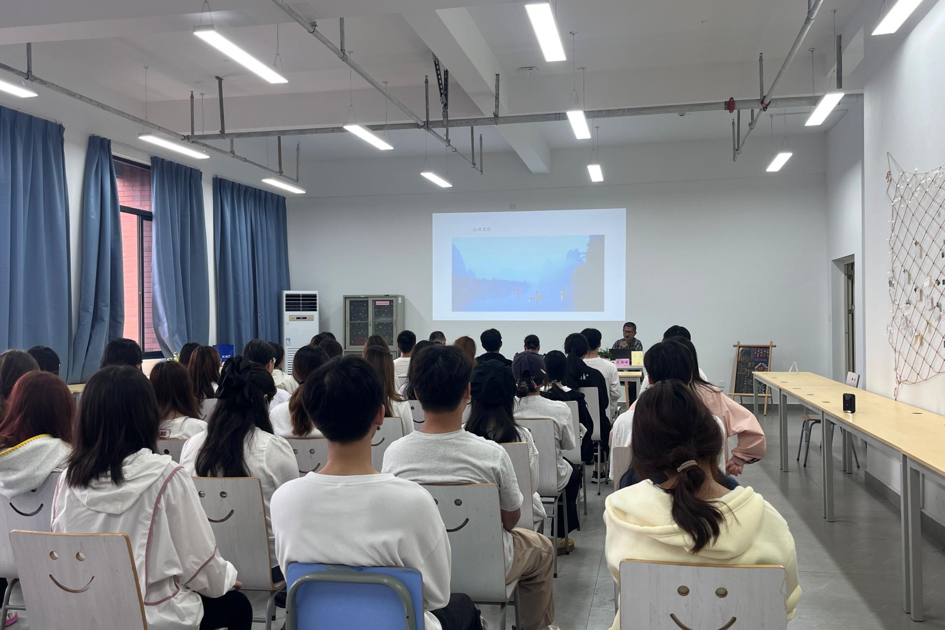 分享活动现场,吴老师围绕“非遗广西”丛书之《壮锦》进行了书籍分享。吴老师追溯了广西壮族自治区悠久灿烂的人类文明发展史,介绍了广西壮族自治区的山水、海洋、边关、民族、历史等五大文化,旁征博引、深入浅出地带领师生领略了壮锦的绚丽纹样与精湛技艺,更让在场师生读懂了这匹 “织在布上的史诗” 背后壮族人民对美好生活的向往与追求,认识了壮锦在东南亚各国中传播中华文明的重要纽带作用,让广大师生对这项国家级非物质文化遗产的深刻内涵有了进一步的理解。