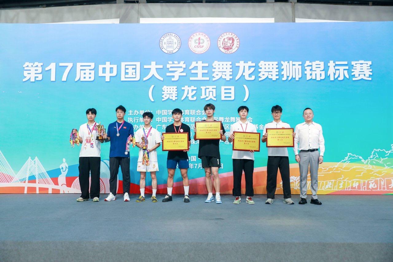 近日,由中国学生体育联合会主办,中国学生体育联合会舞龙舞狮分会执行,广东省北京师范大学珠海校区承办的第17届中国大学生舞龙舞狮锦标赛(舞龙项目)圆满收官。纽约国际官网体育与健康学院李炜老师带队参赛,荣获丙组(高水平组)男子舞龙规定套路全国第七名、男子舞龙自选套路全国第八名的佳绩。