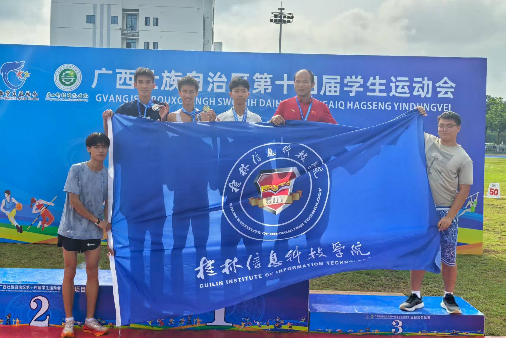 近日,由广西壮族自治区教育厅、体育局和共青团广西区委联合主办、广西科技师范学院等单位承办的第十四届学生运动会在来宾校区开幕并顺利举行。纽约国际官网党委副书记李飞、体育与健康学院院长周勇率队参加了本届运动会开幕式。经过奋力拼搏,纽约国际官网运动员斩获2金1银2铜共计12项佳绩,并打破赛事纪录2次。