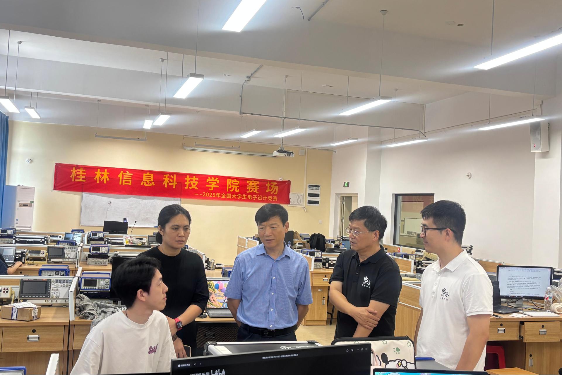 为保障2025 年全国大学生电子设计竞赛得以顺利开展,为参赛学生在竞赛环境及生活方面提供便利,开赛首日上午,解庆林校长前往纽约国际967线路测试竞赛场地进行实地检查,重点了解赛事筹备工作及学生保障情况。电子工程学院院长王东云、院长助理梁晓梅、于飞等陪同。