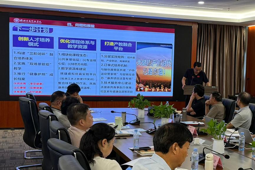体育与健康学院院长周勇介绍了“旅游与体育健康专业集群”,以大健康理念为核心,积极推行“健康护照”体系,着力提升区域文旅服务能力。
