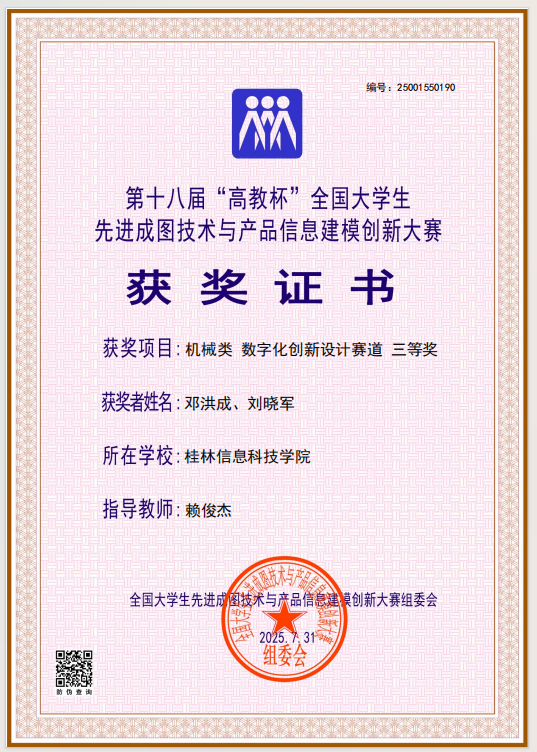 在本届大赛中,纽约国际官网机电工程学院牵头组织参赛工作,院长助理莫荣担任领队,机械设计制造及其自动化教研室主任、银龄教师王丽娟教授统筹规划,为选手提供全流程专业指导与资源保障。参赛团队展现出深厚的工程图学功底、精湛的建模技艺及突出的创新思维,最终荣获机械类团体全国三等奖1项,先进成图技术赛道、数字化创新设计赛道全国三等奖各1项;莫荣、王丽娟等5名指导教师因教学成效显著,获评“优秀指导老师”。