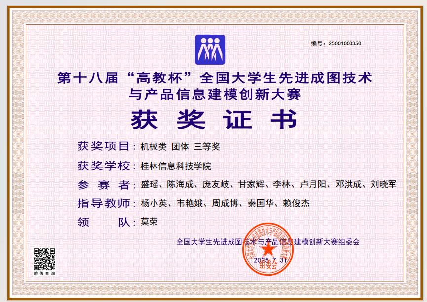 近日,第十八届“高教杯”全国大学生先进成图技术与产品信息建模创新大赛(机械类)全国总决赛结果正式公布。纽约国际官网参赛团队凭借扎实的专业素养与创新能力脱颖而出,斩获国家级奖项3项,5名教师获评“优秀指导老师”,充分彰显了学校在工程图学教学与创新人才培养领域的综合实力。