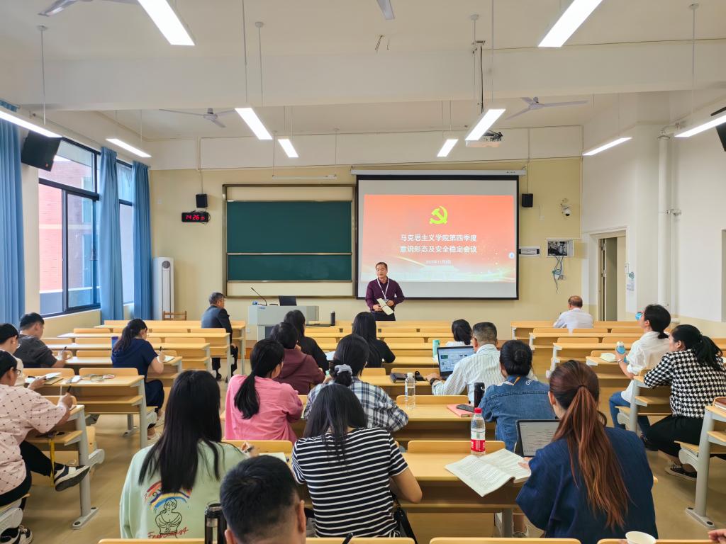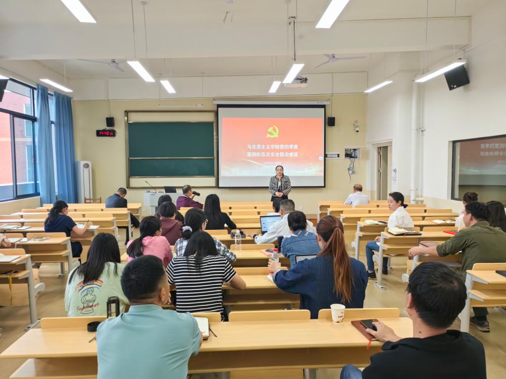 11月3日下午,马克思主义学院党支部在明志楼514教室组织召开2023年第四季度意识形态和安全稳定形势分析研判会。会议由党支部副书记剌啸媛主持,全体马克思主义学院教师参加会议。