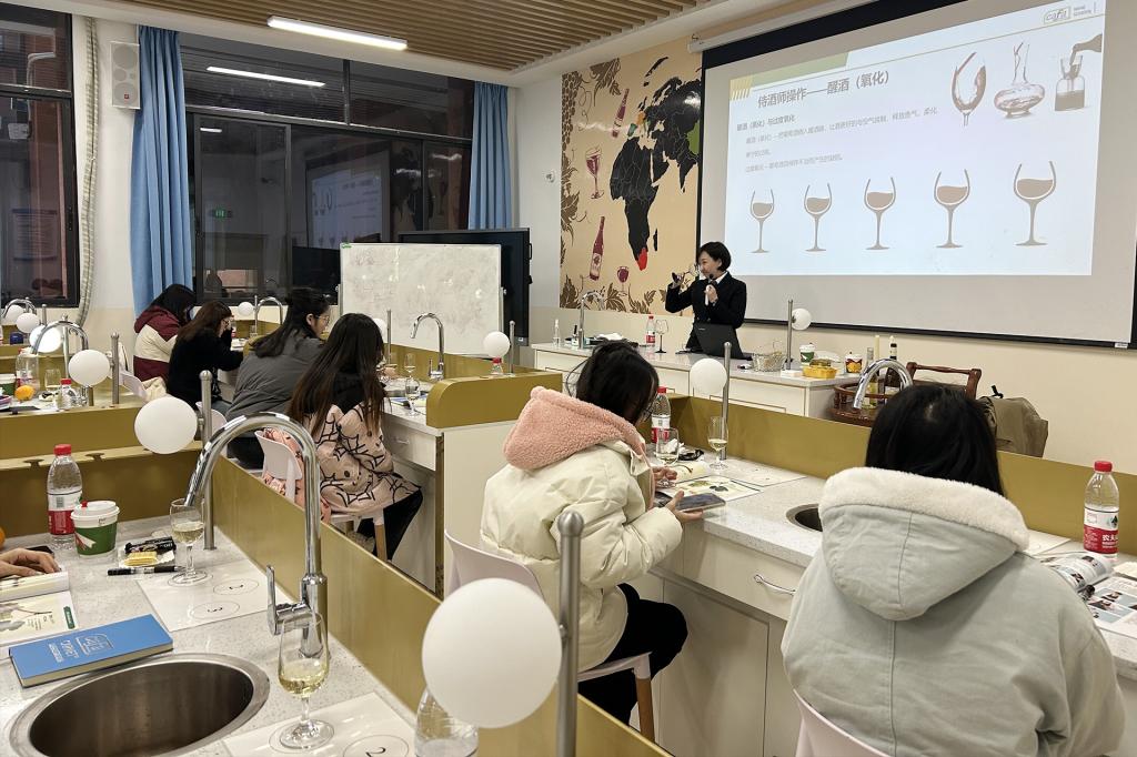 课程分为上午的理论以及下午的实操两部分。在理论课程上,马老师用娓娓道来的方式向学员们介绍了葡萄酒的基础知识,课程内容专业且有趣,学员反响积极;下午实操课中,学员们在马老师的指导下对不同的红、白葡萄酒进行了品鉴,学员们在老师鼓励下也积极分享了自己的品鉴与思考。
