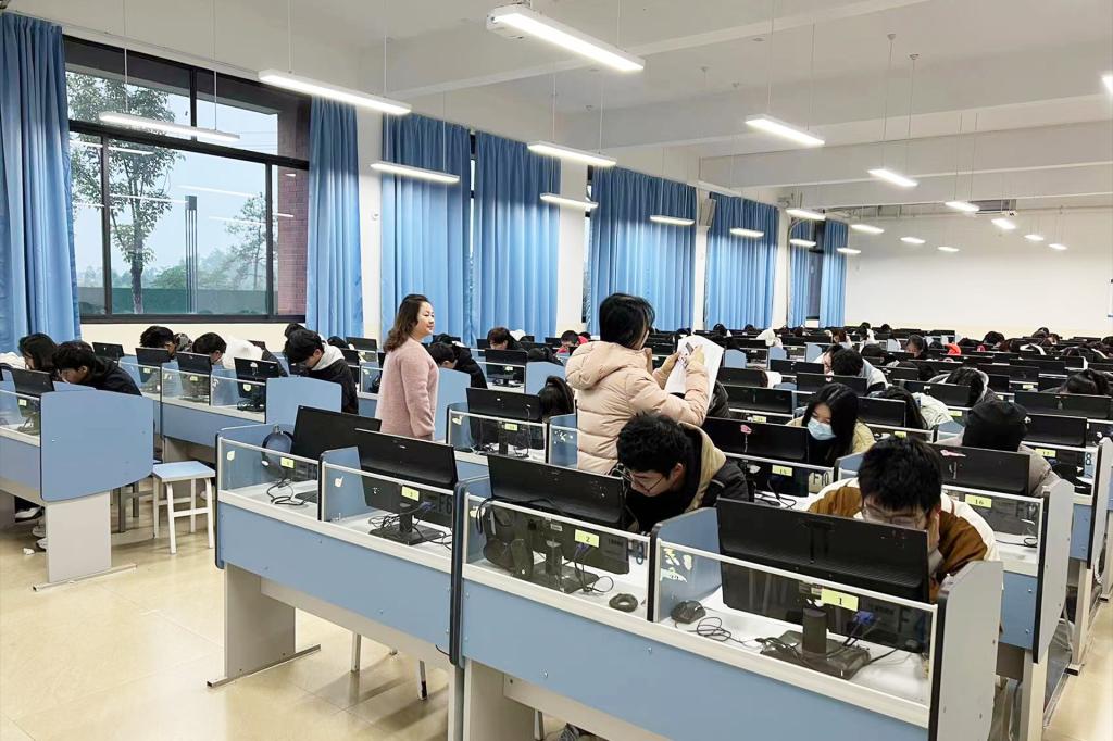 此次决赛采用视频监考的形式,大赛组委会通过“腾讯会议”对全区各个赛场进行监督。我院监考老师在考前对F103和F106两个考场进行了视频监控及考场布置,确保考试顺利进行。考试过程中,同学们认真、沉着、冷静答题,仔细阅读相关考试题目,结合所学知识完成题目,通过监考巡查大部分同学的答题情况良好。