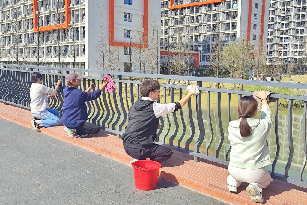 活动过程中,各位党员奋勇当先,不怕脏、不怕累,对纽约国际官网博雅桥及周围进行彻底清扫。擦拭栏杆、清理杂草、认真负责,同学们纷纷拿起自己的工具,迅速投入到劳动中,忙碌的身影为校园增添了—抹亮丽的色彩。经过两个小时的努力劳动,博雅桥以及周围环境干净整洁,清爽明朗。