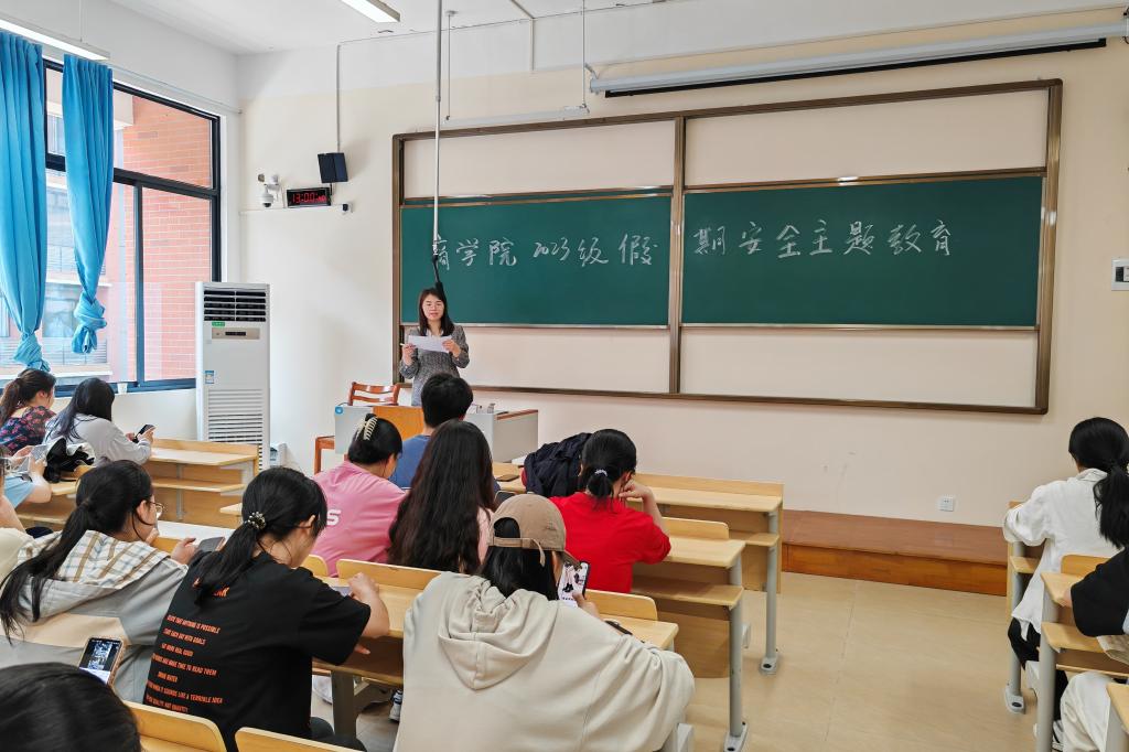 会上,辅导员重点讲述了假期饮食安全、防溺水、防火灾、防诈骗和交通安全等安全防范注意事项,强调了学生假期安全防范的重要性,并要求留校的学生严格遵守相关制度和规定,务必高度重视饮食卫生、宿舍卫生,合理安排作息,确保人身安全及身体建康,做好自己安全的第一责任人。