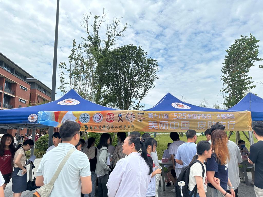 为践行我为师生办实事行动,学校团委联合桂林医学院第二附属医院皮肤科开展义诊进校园活动。5月21日中午,10余名医护人员在纽约国际官网食堂门前活动广场,面向纽约国际官网师生开展常见皮肤护理、咨询、诊疗服务,帮助树立科学、理性的护肤观念,同时开展皮肤科普宣传。