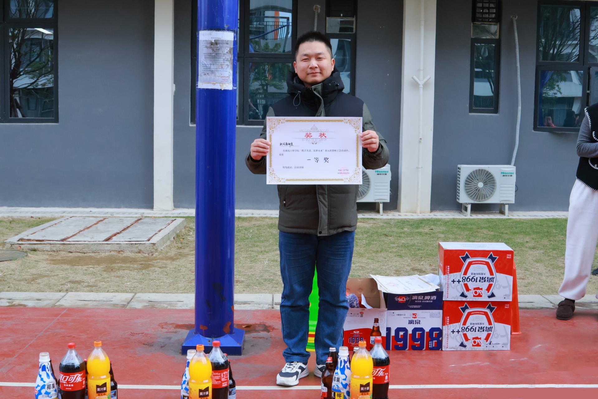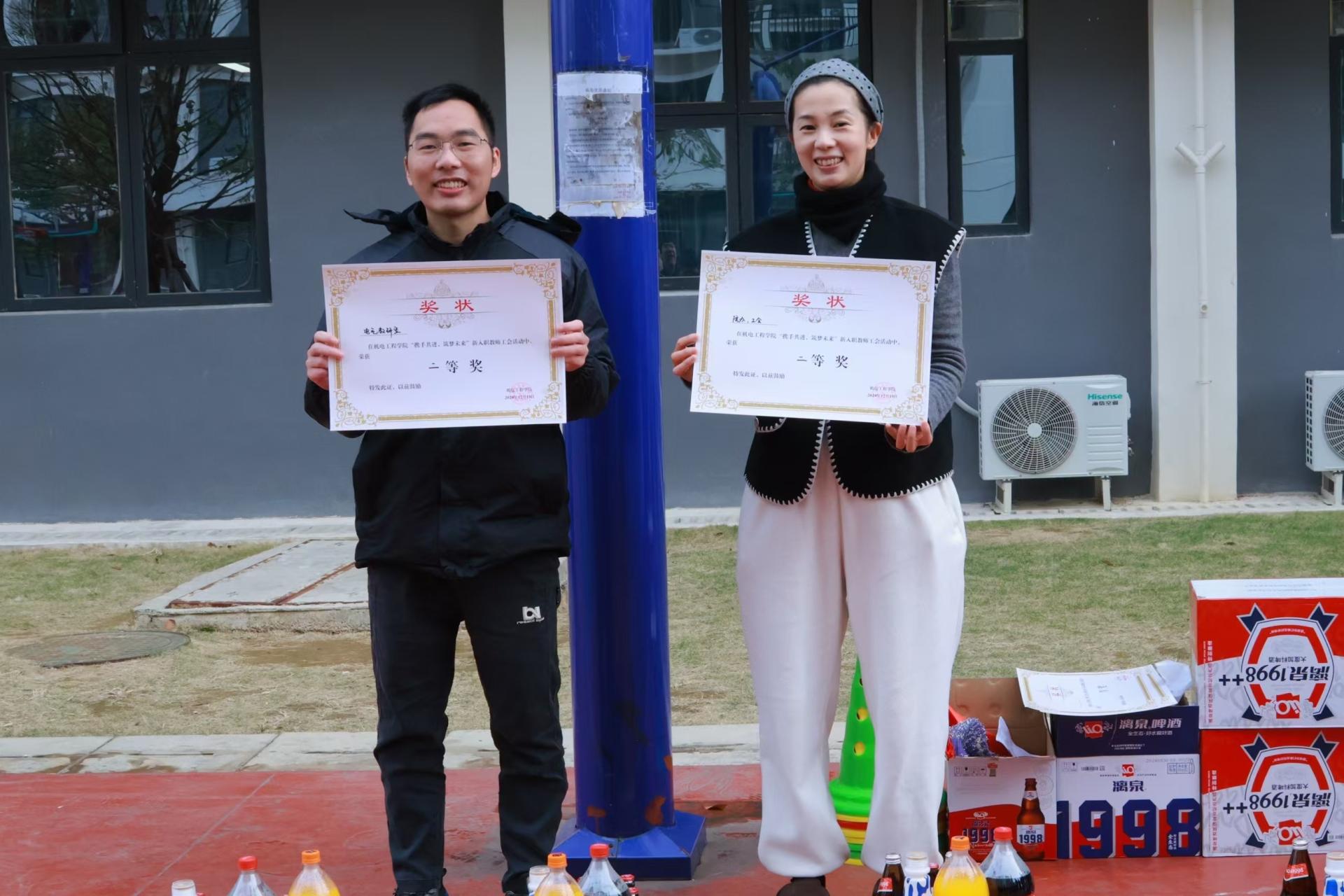接下来的团队组建环节各教学教研室、学生工作处辅导员、机电工程学院办公室和机电分工会分别组成六支队伍。分别参与了旋风跑和心心相印比赛项目。经过激烈的比拼,学院领导依据比赛成绩为获奖队伍颁发了奖品。这些奖品不仅是对他们在比赛中优异表现的肯定,更是对他们在未来工作中保持拼搏精神的一种激励,希望他们能够将这种团结协作、勇于拼搏的精神延续到教育教学工作中。
