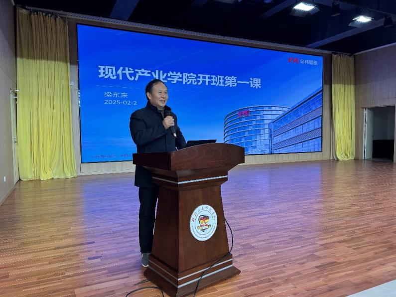 会上,院长胡国文教授首先发表讲话,他指出建设现代产业学院是学校应用型人才培养模式改革的重要举措,也是学校建设高水平应用型大学的开端,并详细讲解了现代产业学院的培养目标和组织方案,并强调了产业学院对于培养适应锂能行业发展人才的重要意义,鼓励学生们积极探索、勇于实践,为未来投身锂能产业做好充分准备。随后,亿纬锂能人力资源中心总监梁东来围绕锂能行业当下与未来的发展态势展开讲解,详细介绍了企业内部人才多通道发展体系。他指出,在当下的锂能产业格局中,人才的多元化发展至关重要,并详细讲解了亿纬锂能的提升路径,还提到企业为人才发展提供的诸多机会,如内部轮岗、参与重大项目,以及海外基地发展机遇等,鼓励学生们在产业学院学习中注重提升自身综合能力,以适应未来职场的挑战。