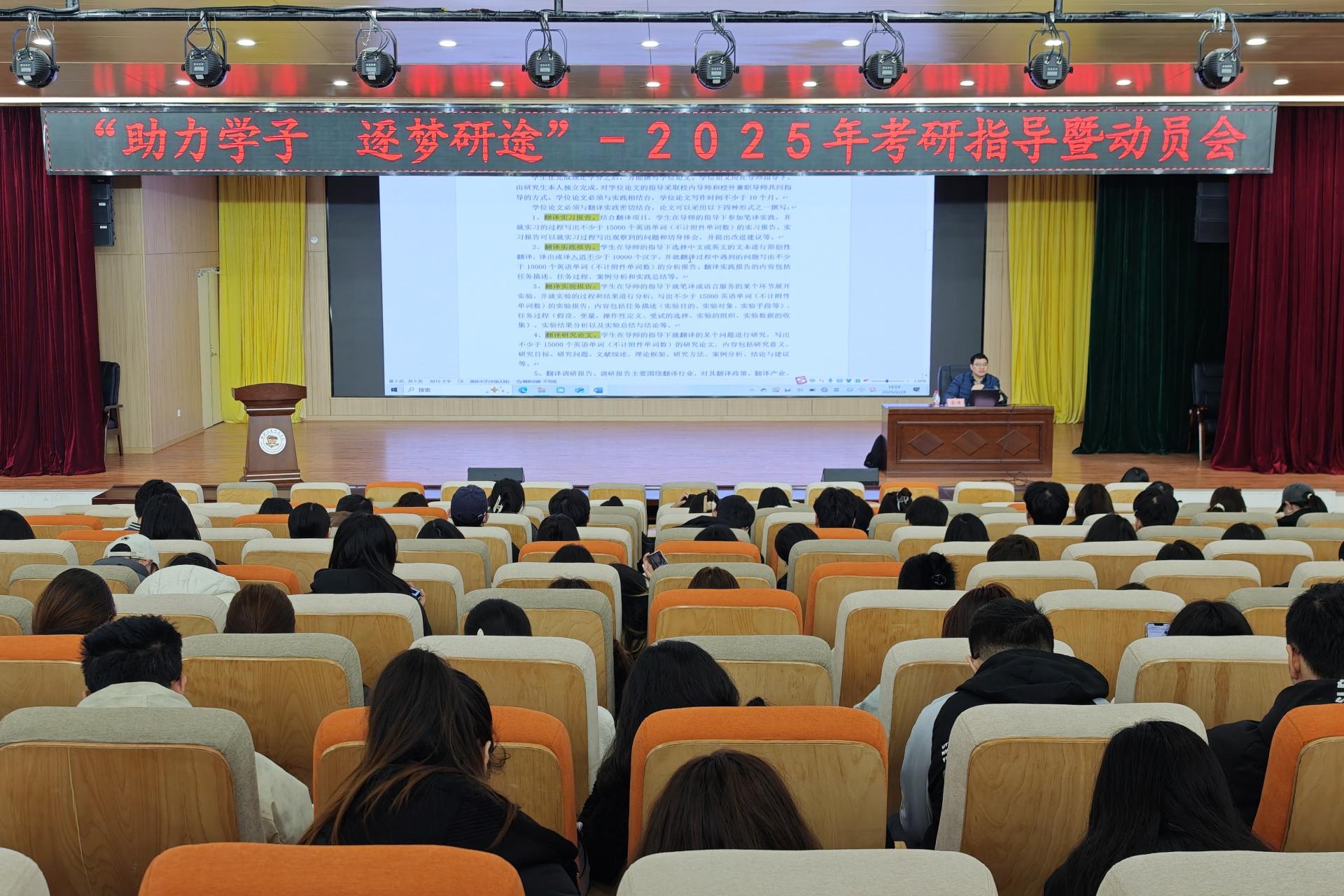 为帮助2022级学生科学规划考研目标、掌握备考策略,3月3日下午,外贸与外语学院于F107报告厅举办“助力学子 逐梦研途”——2025年学生考研指导讲座暨动员会。活动特邀桂林电子科技大学外国语学院副院长全峰副教授作专题讲座,学院党总支书记李刚主持活动,2022级全体学生及辅导员共400余人参加活动。
