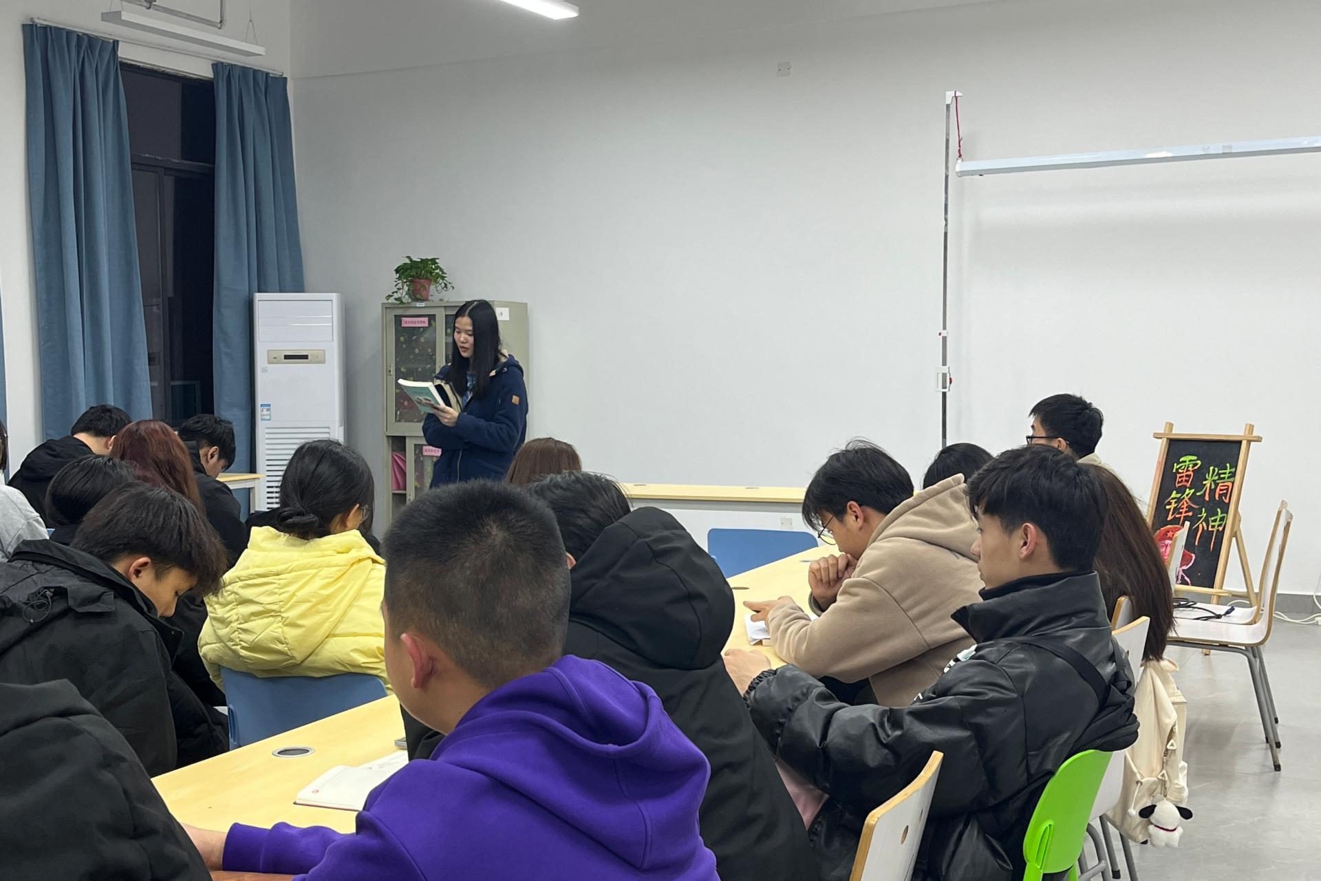 为了进一步弘扬雷锋精神,营造浓厚的阅读氛围,图书馆读书协会近日在图书馆六楼621室举办了一场以“书香传雷锋,行动践初心”为主题的读书活动。本次活动由读书协会会长赵鸣九和讲师团成员左秋秋共同主持,协会指导老师机电工程学院辅导员于凌浩老师参加了活动。