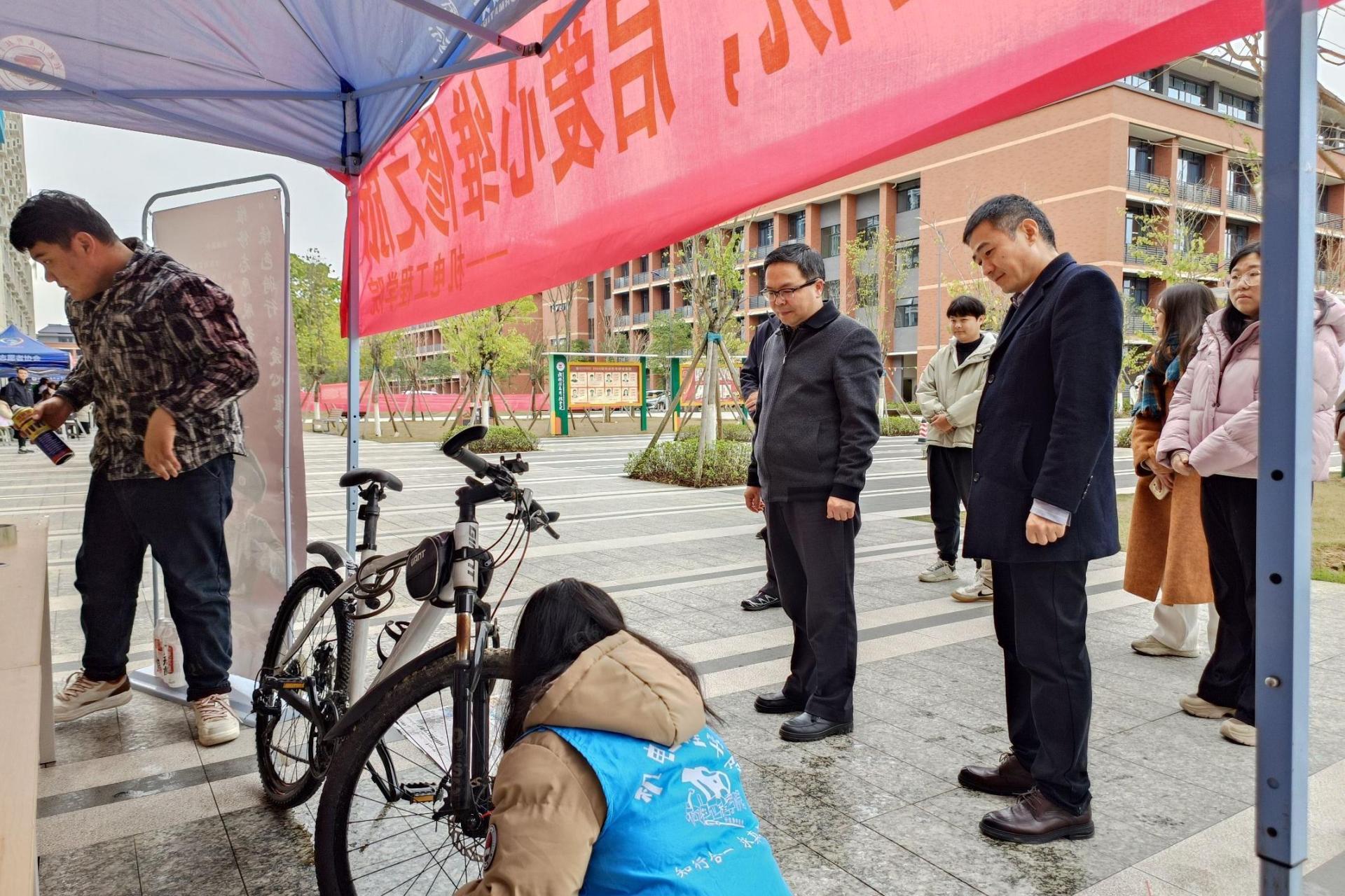 活动现场,工作人员从如何检查刹车系统的灵敏度,到定期为链条添加润滑油的重要性,再到轮胎气压的正确测量与调整,每一个细节都讲解得十分详尽。不仅如此,他们还亲自示范基本的维修技能,如更换自行车内胎、调整变速器等,现场同学纷纷围拢过来,认真观摩,不时提出自己的疑问,维修同学都一一耐心解答。活动期间,学院领导亲临现场视察指导,对此工作给予了高度评价。