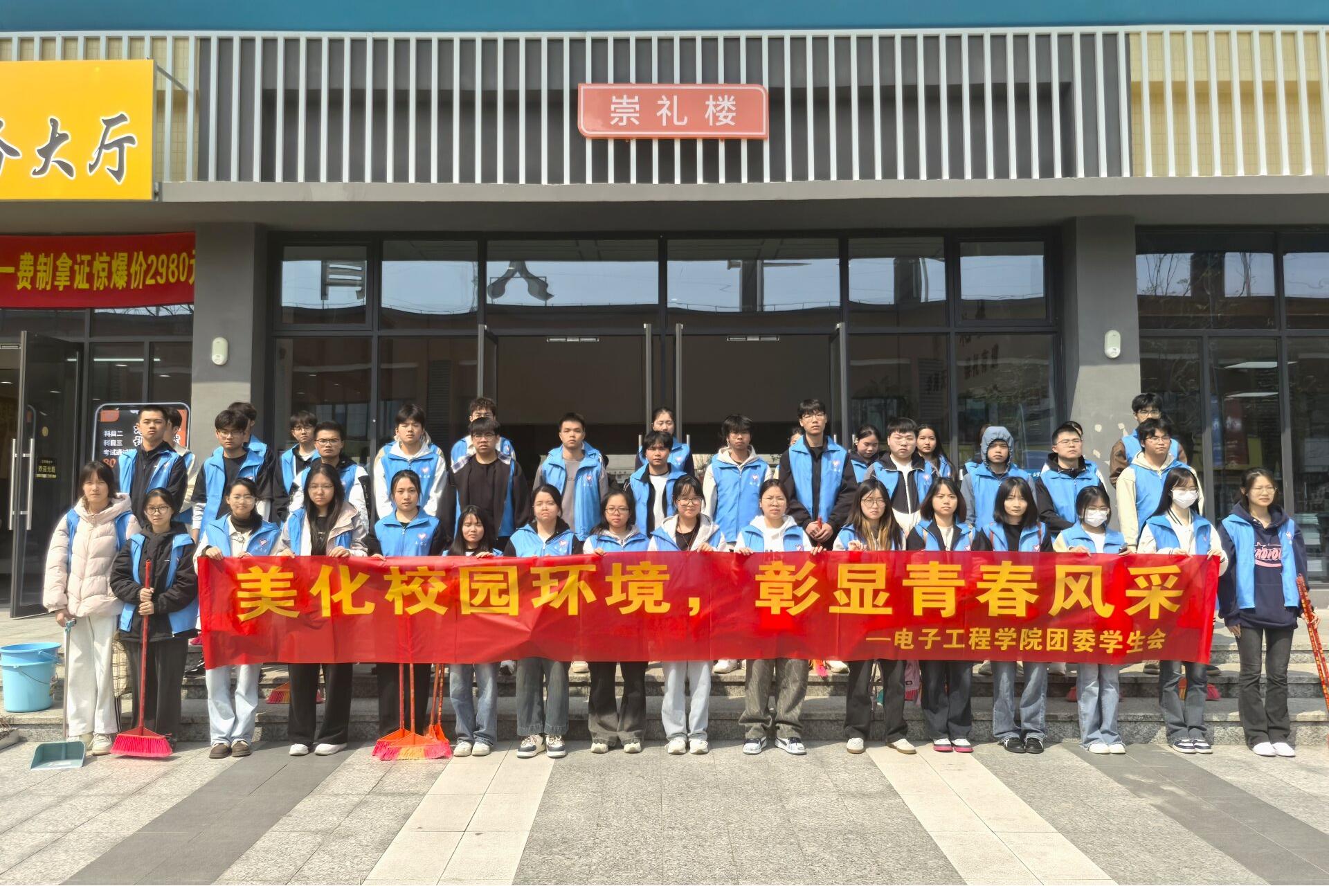 为增强学生环境保护意识,培养良好卫生习惯。3月21日中午,电子工程学院组织64名志愿者在崇礼楼开展了以“清洁公寓,共创美好校园”主题志愿服务活动。