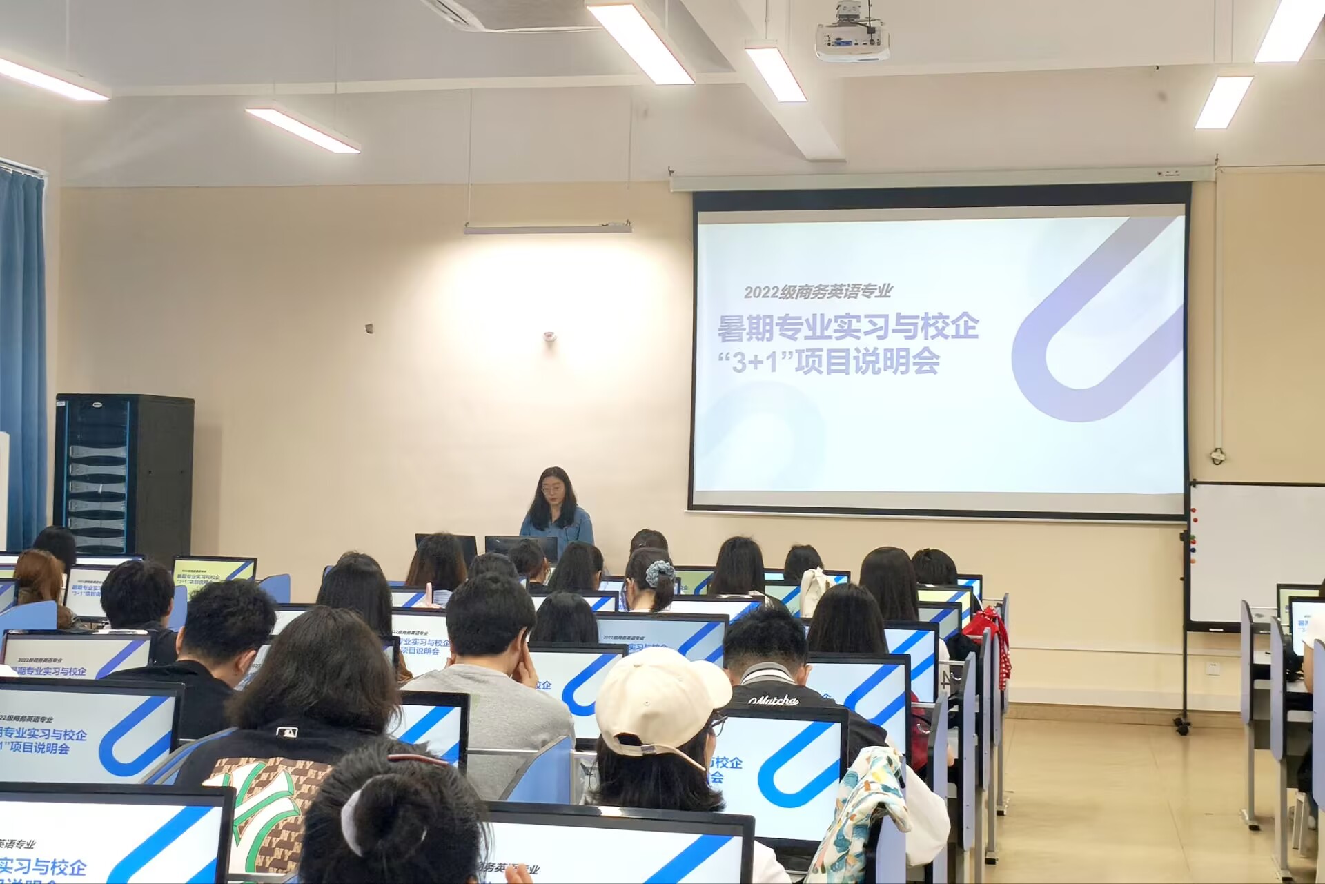 4月11日,外贸与外语学院在F108教室召开2022级商务英语专业暑期专业实习暨2025年“3+1”联合培养项目说明会,会议由商务英语专业教研室副主任闵世琦主持,2022级商务英语专业全体学生参加。
