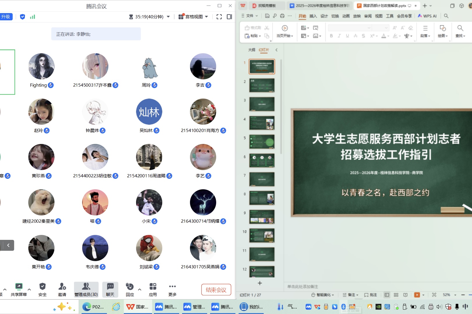 为引导毕业生扎根基层、服务西部,4月30日,商学院面向2025届毕业班开展大学生志愿服务西部计划招募选拔线上宣讲会。会议由第二学生党支部书记、毕业班辅导员李静怡老师主讲,应届毕业生通过线上方式参与。