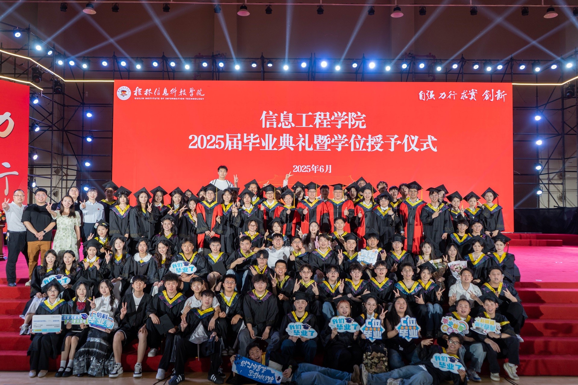 本次毕业典礼在温馨感人的氛围中圆满落幕。愿信息工程学院的2025届毕业生们带着母校的嘱托与祝福,在未来的征程中乘风破浪,以青春之我书写时代华章!