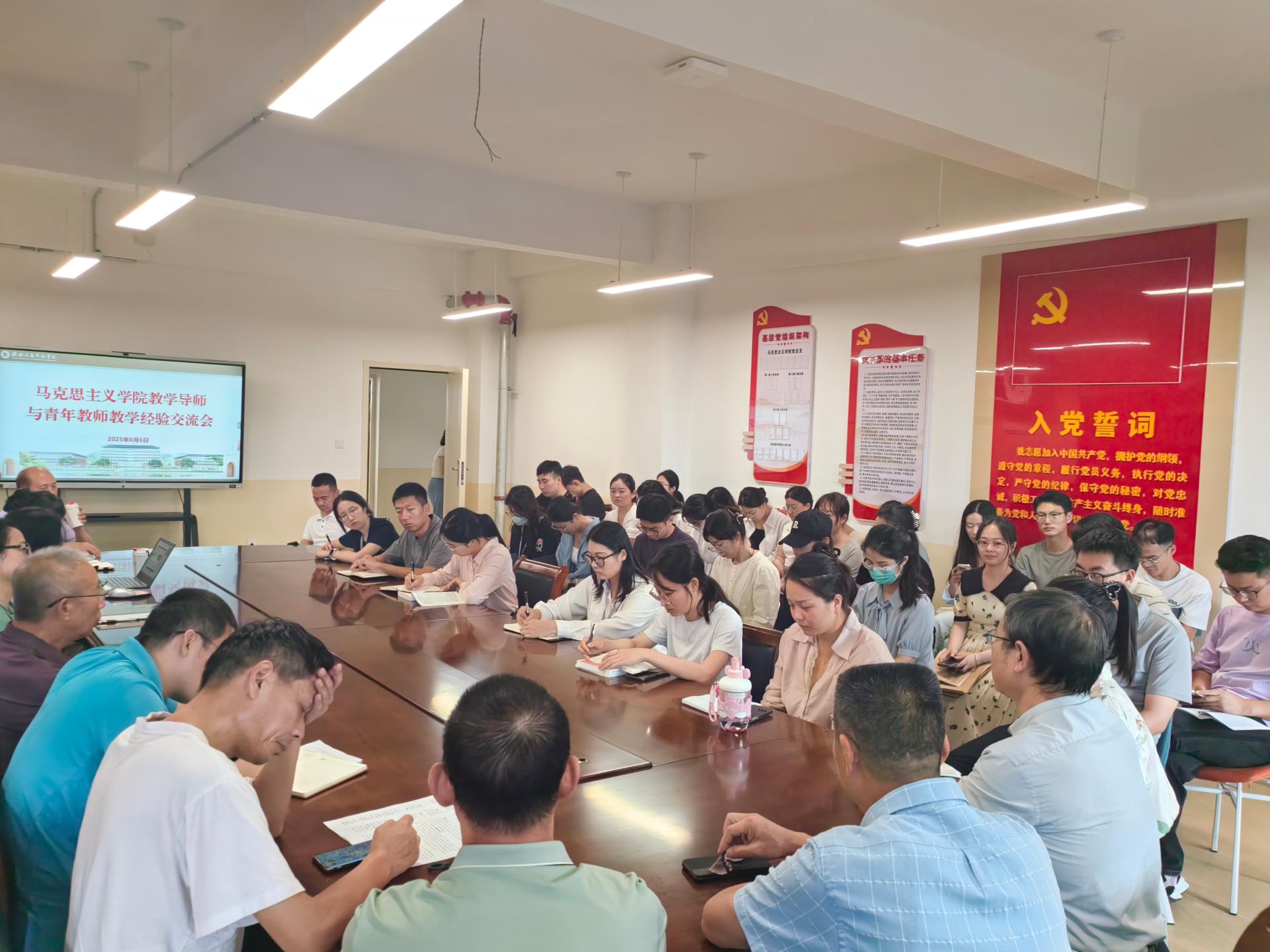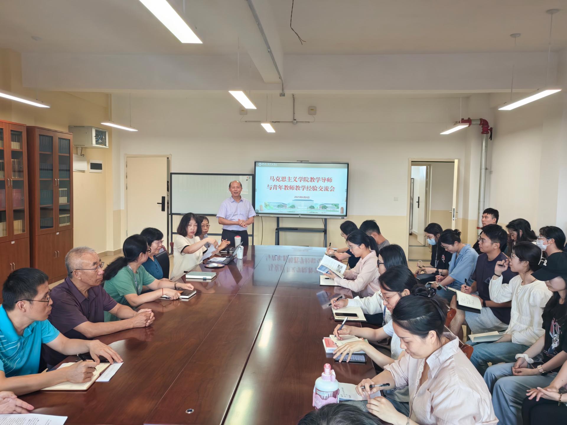 6 月 6 日,马克思主义学院在 G610 会议室组织召开教学导师交流会,就青年教师在培养过程中存在的问题、改进措施及培养方案优化展开深入讨论。会议由马克思主义学院院长邱启照主持,全体教学导师及青年教师参加。