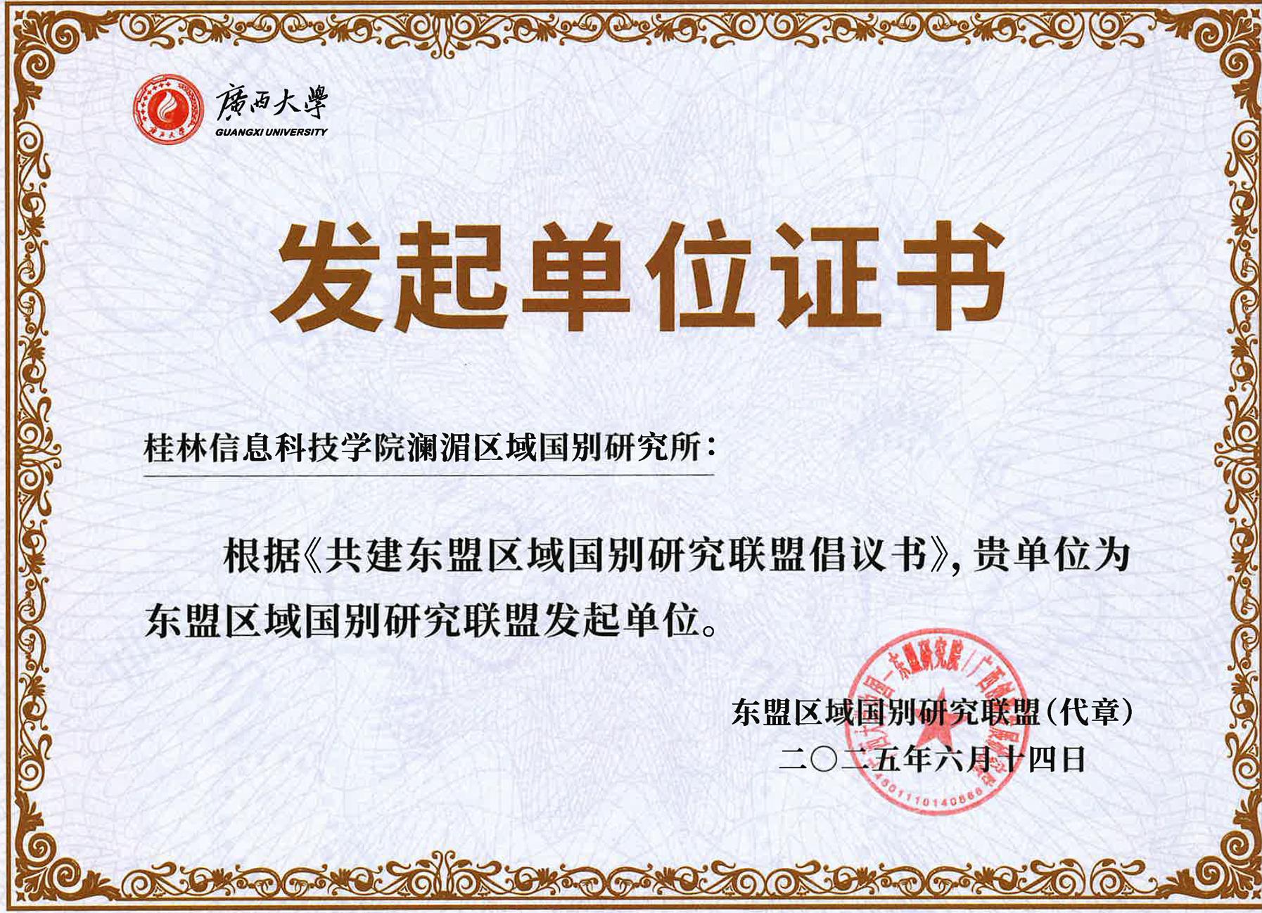 联盟发起单位证书