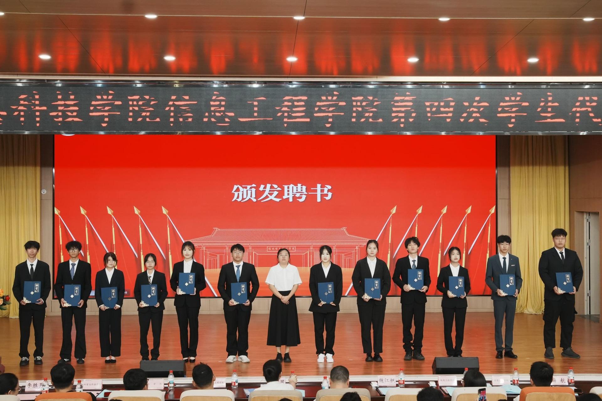 正式会议上,廖星男老师发表致辞,她充分肯定了我院团委学生会在过去一年里所取得的成绩,并对新一届学生干部提出了殷切期望和明确要求,强调学生干部应锤炼品德修为,锻造优良作风,以身作则,发挥好模范带头作用。最后,郭建老师、廖星男老师和魏江帆老师分别为第三届主席团成员和团委学生会两委委员颁发聘书。