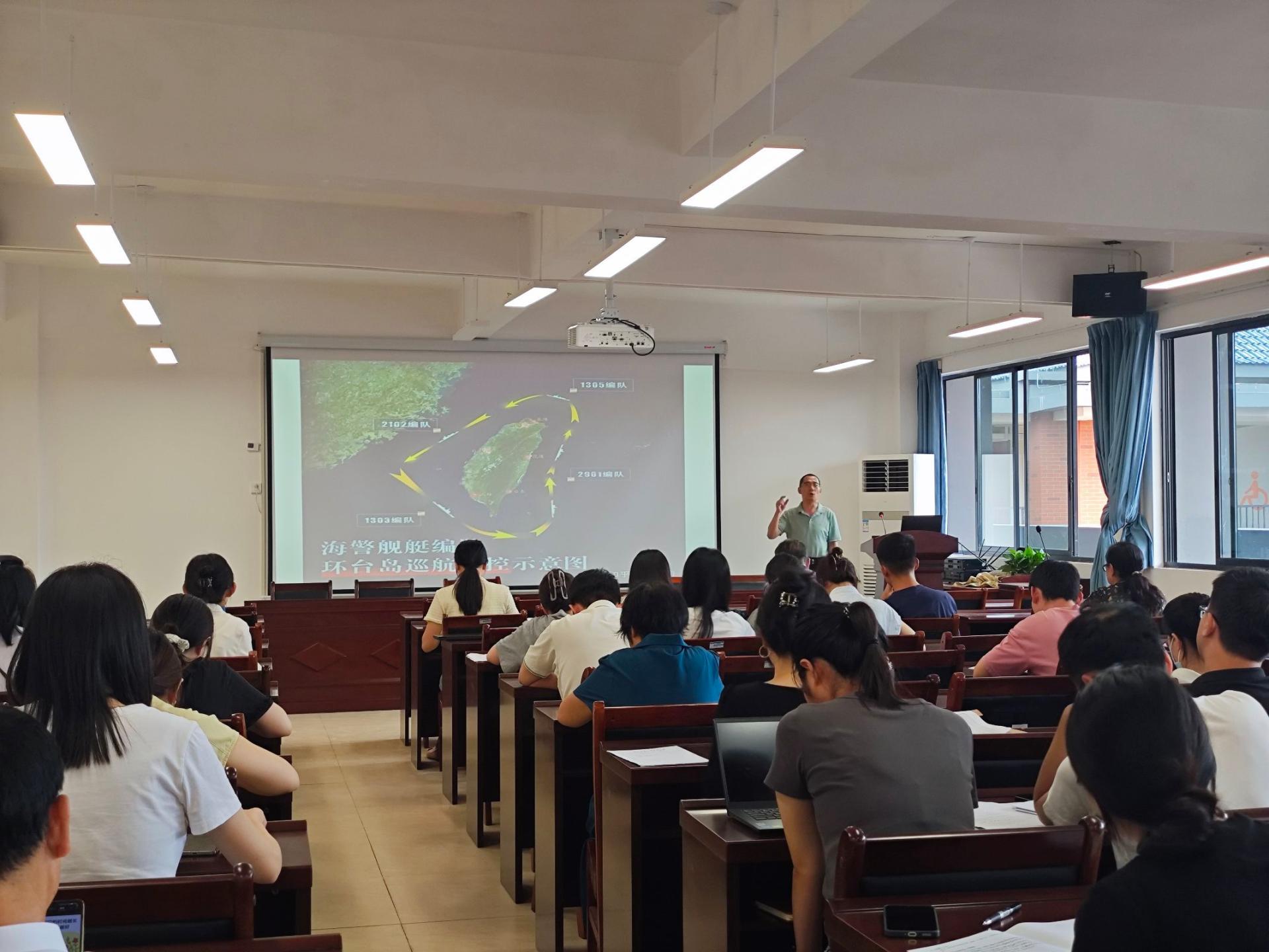 6月27日上午,马克思主义学院的“教授大讲堂”系列讲座在G610会议室顺利举办。本次讲座特邀学院的王贻正副教授担任主讲,他以“深度解读联合利剑军演聚焦对台策略新变化”为题,为全体教职工带来了一场深入剖析台海局势的专题讲座。