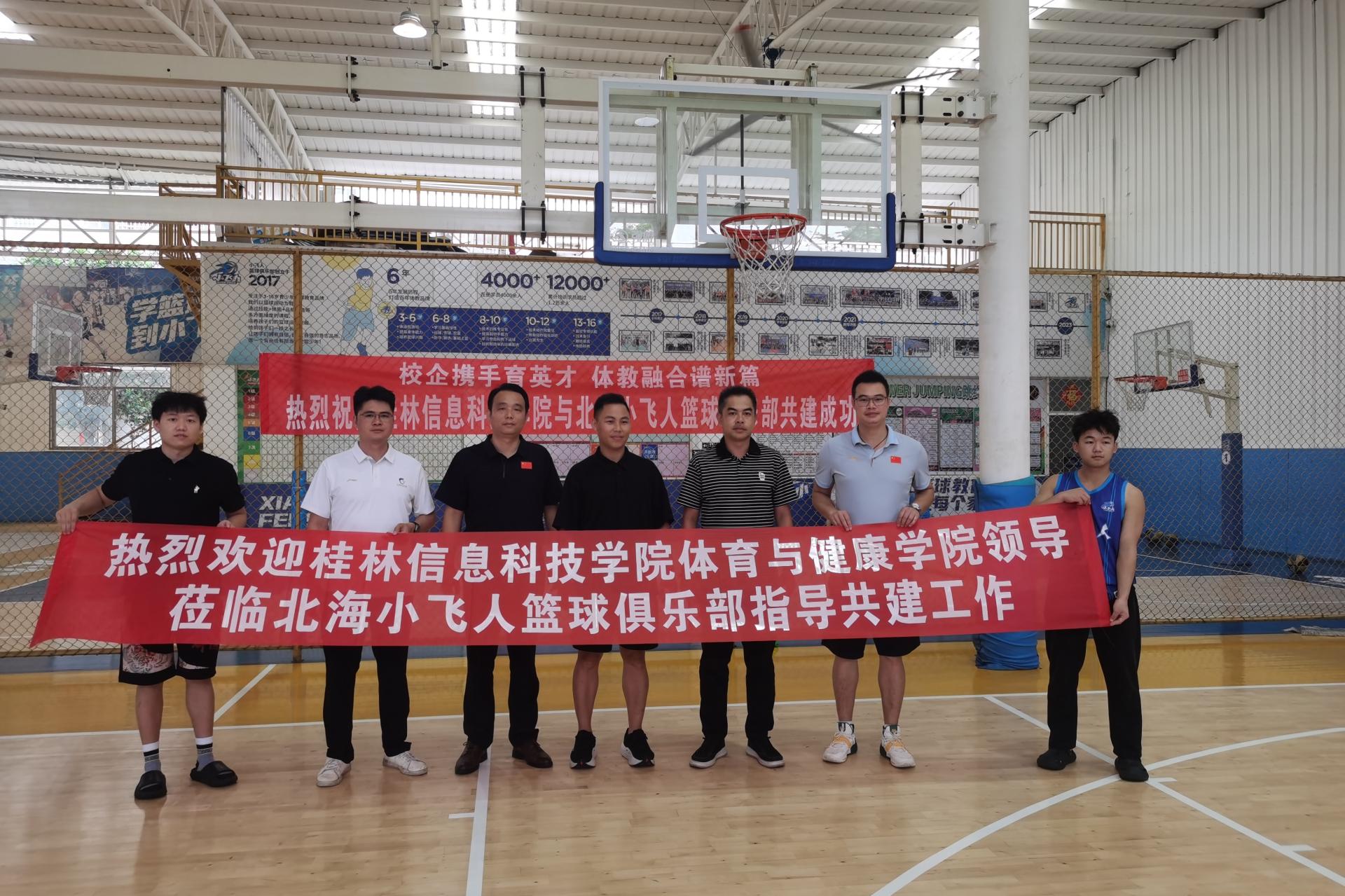 与北海小飞人篮球俱乐部法人李毓敏(左四)合影留念