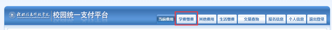 第一步:从学校官方主页()右上角点击“统一收费平台”链接进入,进行缴费。