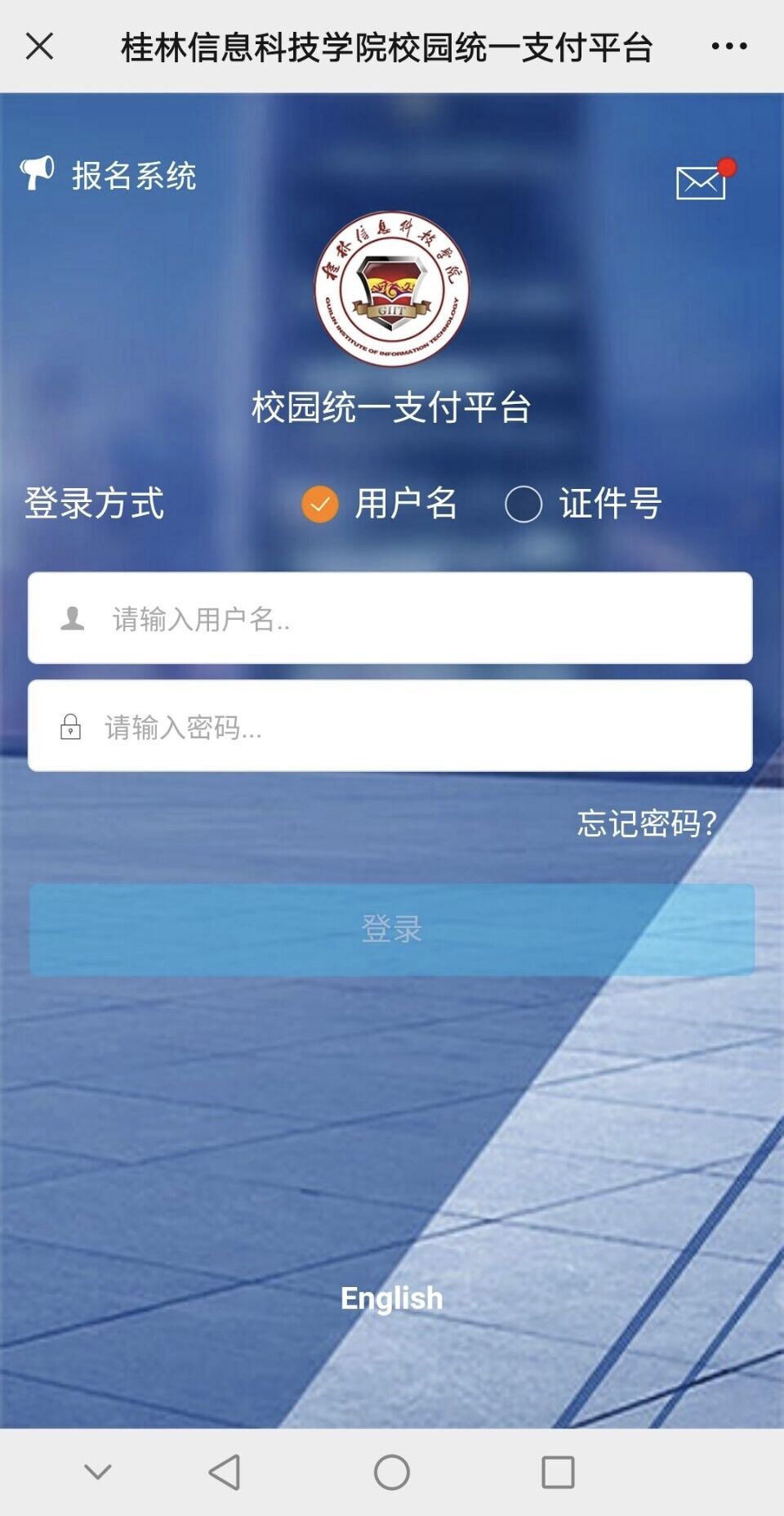 点击“学生缴费”,进入“校园统一支付平台”,有以下两种登录方式: