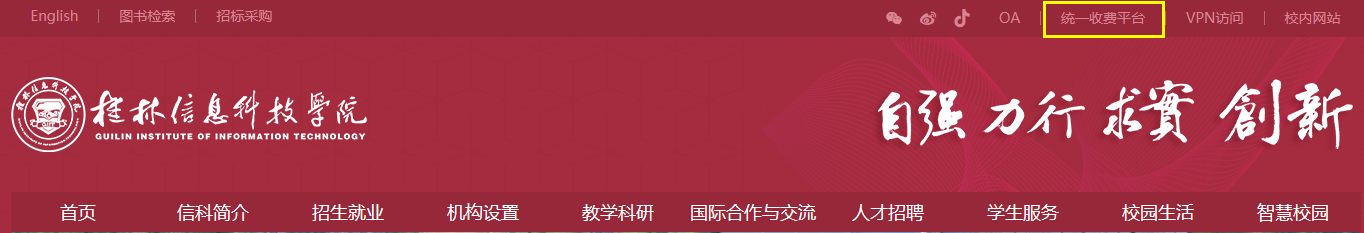 第一步:从学校官方主页()右上角点击“统一收费平台”链接进入,进行缴费。