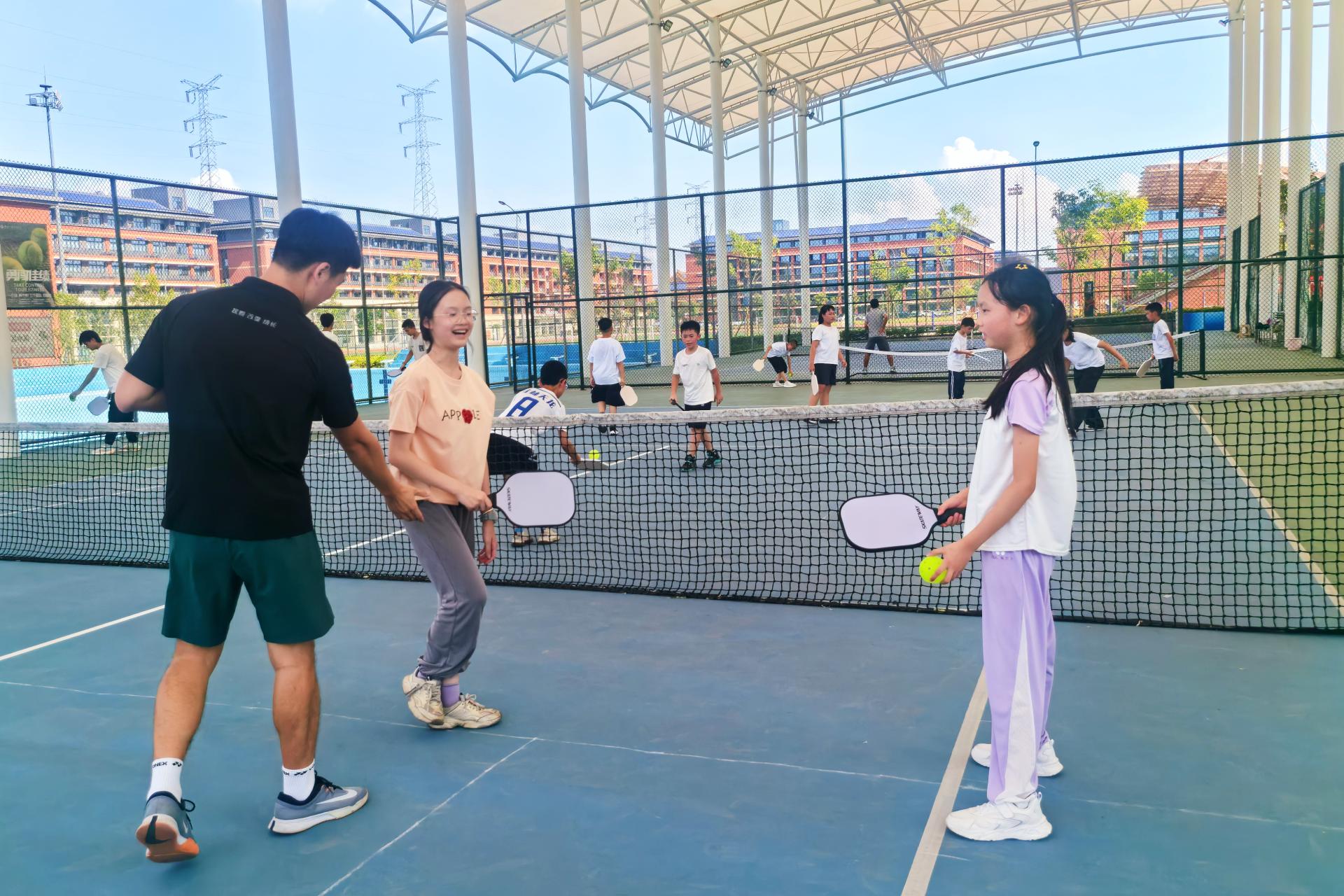 热血青春,驰骋球场。下午15:30,匹克球课程在学校网球场准时开启。体育与健康学院卢锦钊、温鹏两位老师带领大家进行匹克球基础练习,从握拍姿势到简单击球,大家在运动中舒展身心,在协作中感受运动的活力与乐趣。