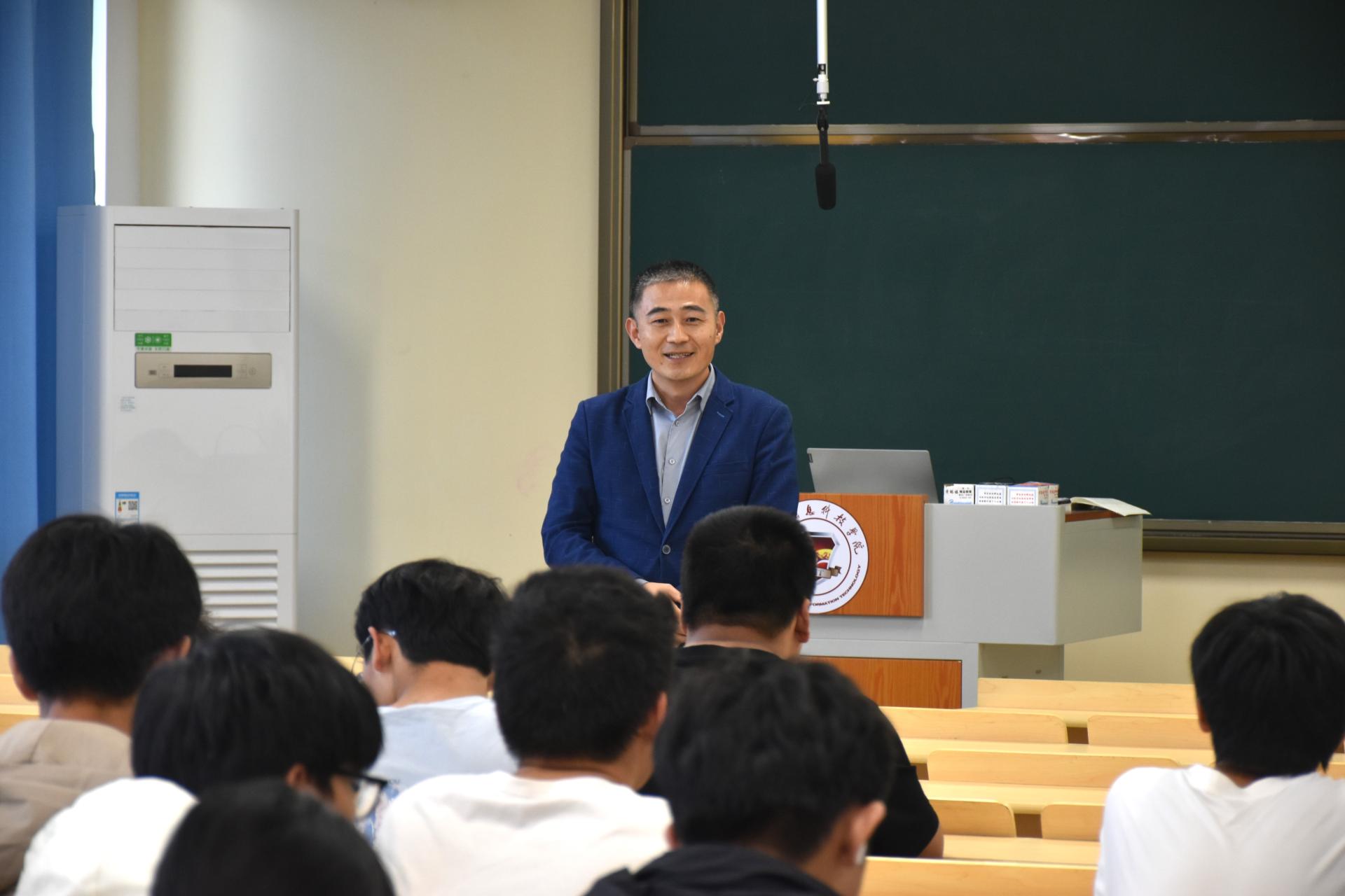 刘跃峰副校长以“加快发展新质生产力”为主题,向电子工程学院的大一学生阐述了在全球百年未有之大变局中,我国发展新质生产力所面临的机遇与挑战,强调了生产力现代化建设的必要性与紧迫性,并鼓励学生们积极投身于科技创新与产业转型,推动经济的发展与转型升级,涵养全球视野,提升自身的综合素质,为推动国家的高质量发展贡献智慧与力量。