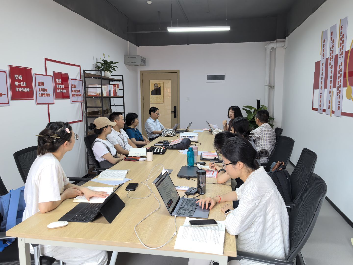 本次活动邀请中国近现代史纲要教研室白勇、李彦宏和习近平新时代中国特色社会主义思想概论教研室涂炳林、易彪、吴敏波、曹晓莉等6位教授和副教授,科学制定“一对一”“一对多”帮扶方案,通过随堂听课、教学反思、案例研讨、集体备课等形式,全方位指导青年教师教学实践与学术发展。在集体备课中,教授们与青年教师深入研讨教学内容,优化教学设计,确保课堂质量;在座谈交流中,骨干教师结合自身从教经历,为青年教师提供职业规划指导,鼓励他们坚定育人初心,提升综合能力。