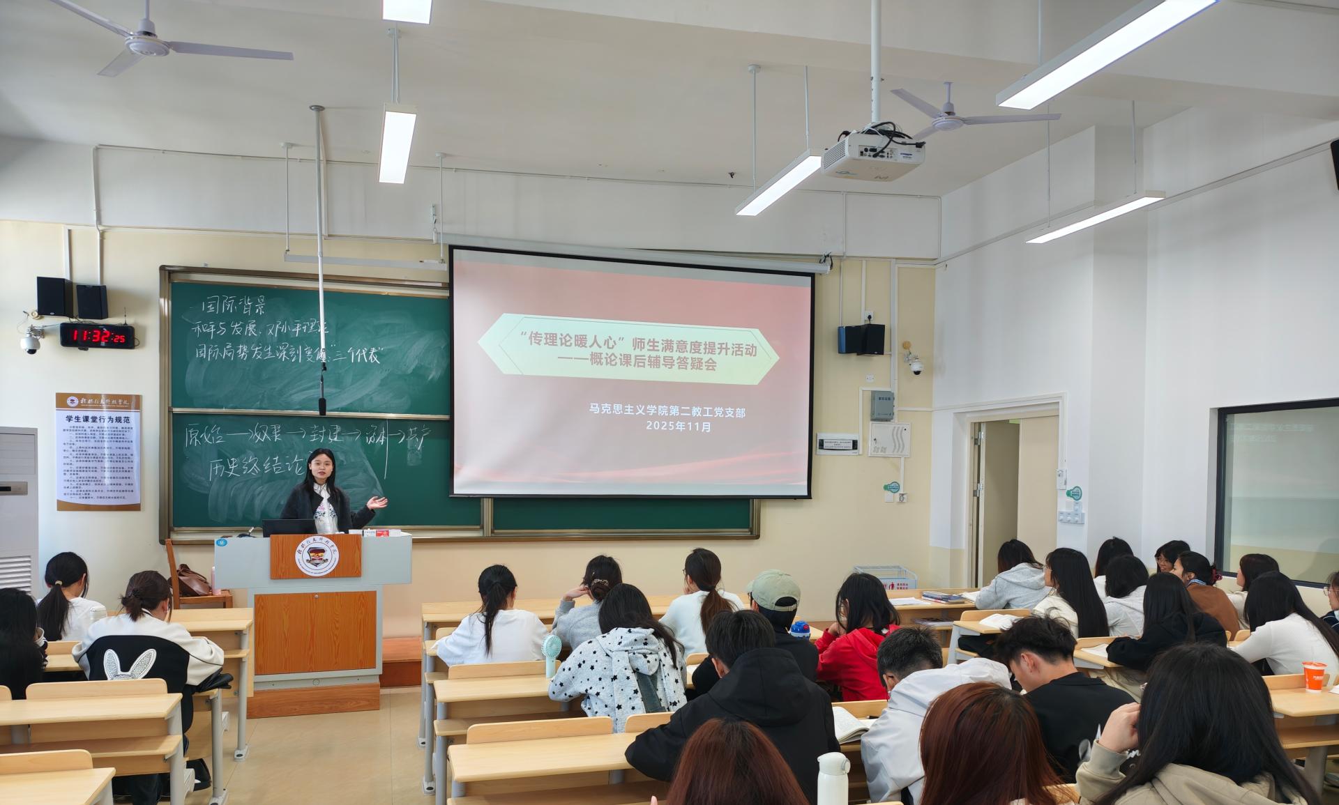 9月至11月中旬,马克思主义学院第二教工党支部组织开展“传理论·暖人心”课后辅导答疑会,针对学生思想困惑与理论学习难点,通过党员教师一对一答疑、专题研讨等形式,将理论宣讲与解决实际问题结合,既彰显了先锋模范作用,也以“小切口”推动思政教育提质增效。