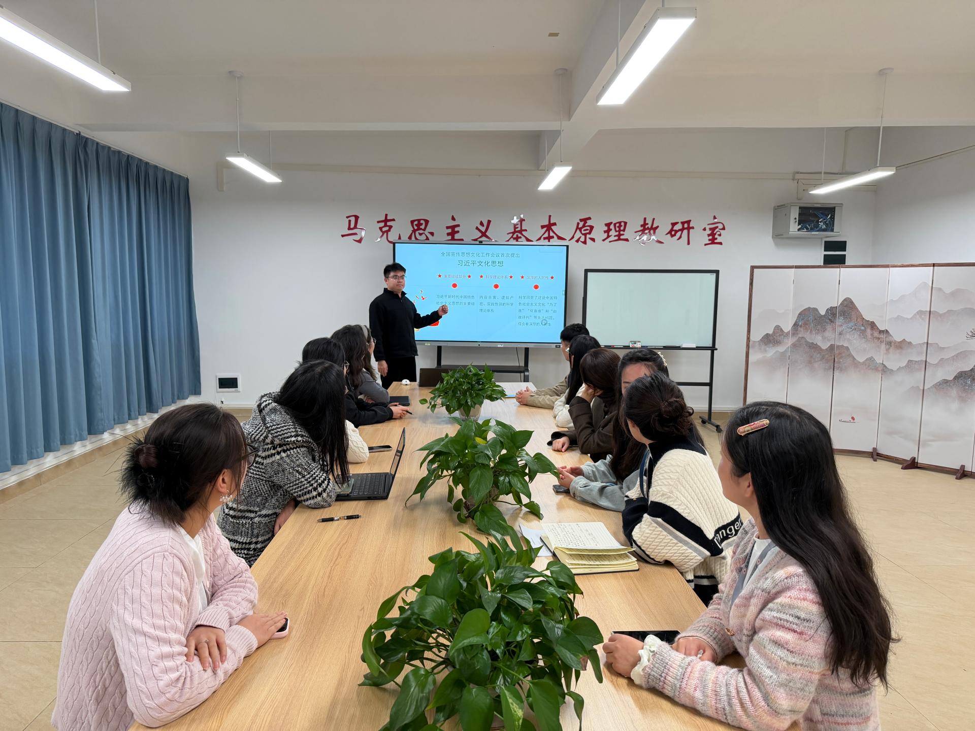 学习活动采取教研室分组研讨形式开展。毛泽东思想和中国特色社会主义理论体系概论教研室聚焦“文化自信与治国理政”主题,结合课程章节设计,研讨如何将习近平文化思想中“两个结合”的核心要义融入教学过程,让理论讲解更具时代感和说服力。马克思主义基本原理教研室结合马克思主义经典著作研读,重点探讨如何将习近平总书记关于教育的重要论述融入原理课教学。交流环节中,党员教师们结合教学实际积极发言,一致认为要把党的创新理论转化为思政课的生动素材,让课堂既有理论高度又有实践温度。