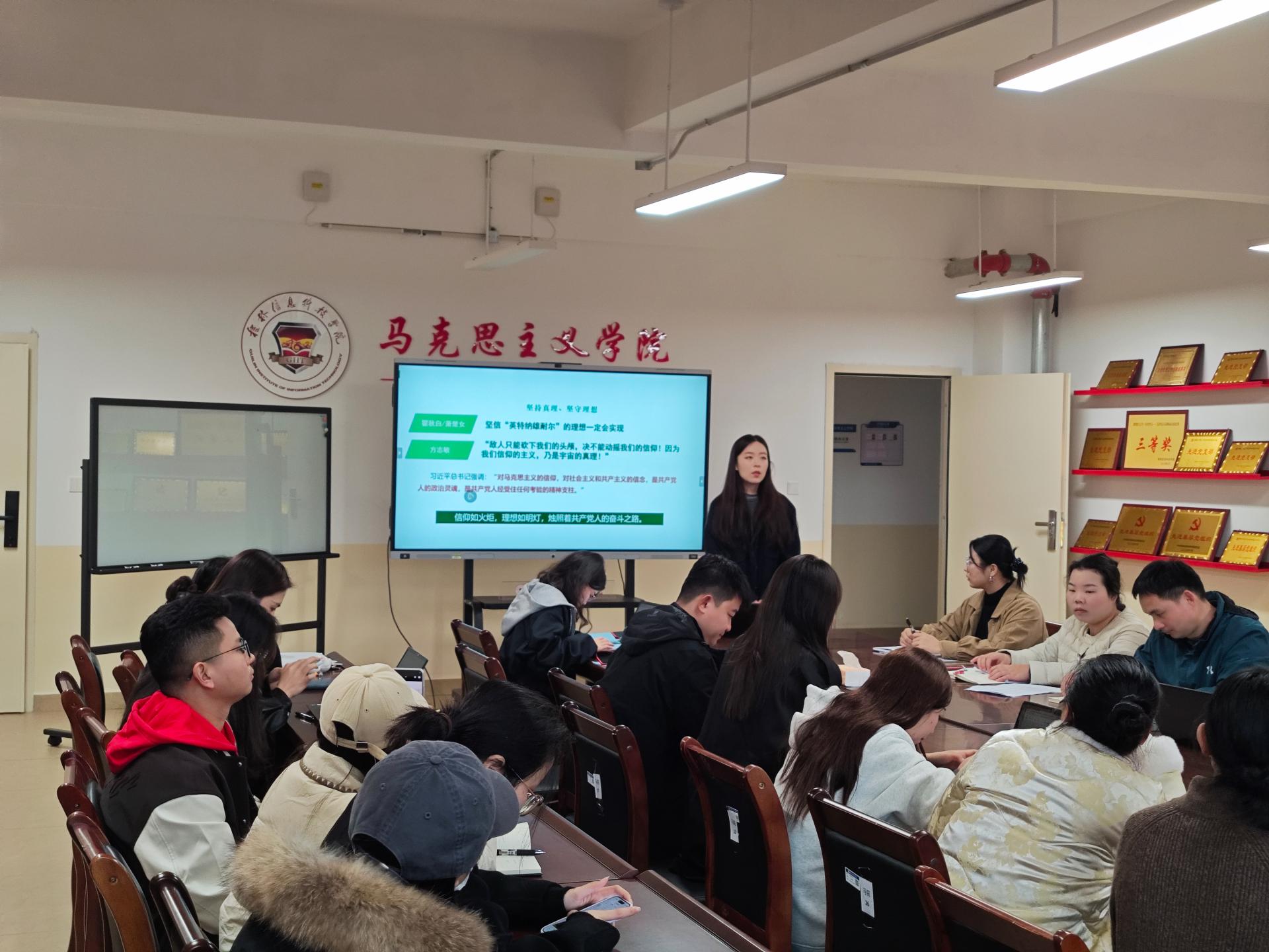 12月12日下午,马克思主义学院第三教工党支部在G610会议室举行了以“赓续红色血脉 传承精神谱系”为主题的专题宣讲活动。活动由支部组织委员李少婷同志担任主讲。