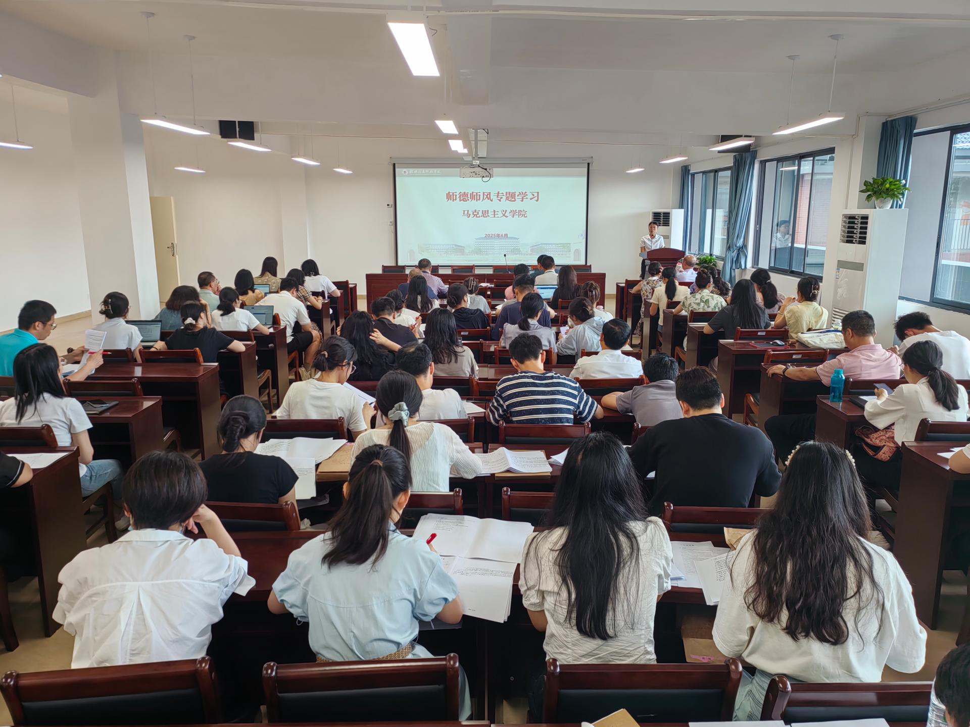 6月27日下午,马克思主义学院在G605会议室召开师德师风专题会议。会议由学院党总支书记赵奕主持,全体教师参加。