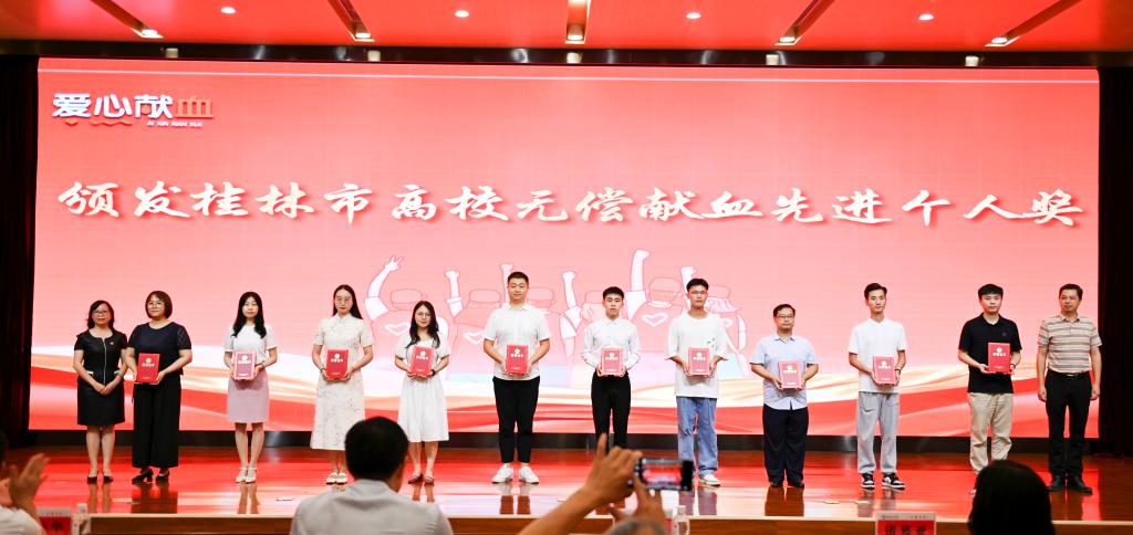 在表彰大会上,纽约国际官网教师马金博、学生吕伟浩、张锦莹荣获“桂林市高校无偿献血先进个人”荣誉称号,刘雄等10名同学荣获“2021年度高校无偿献血公益奖学金”,张汝毅等83名同学荣获“桂林市高校无偿献血奉献奖”。