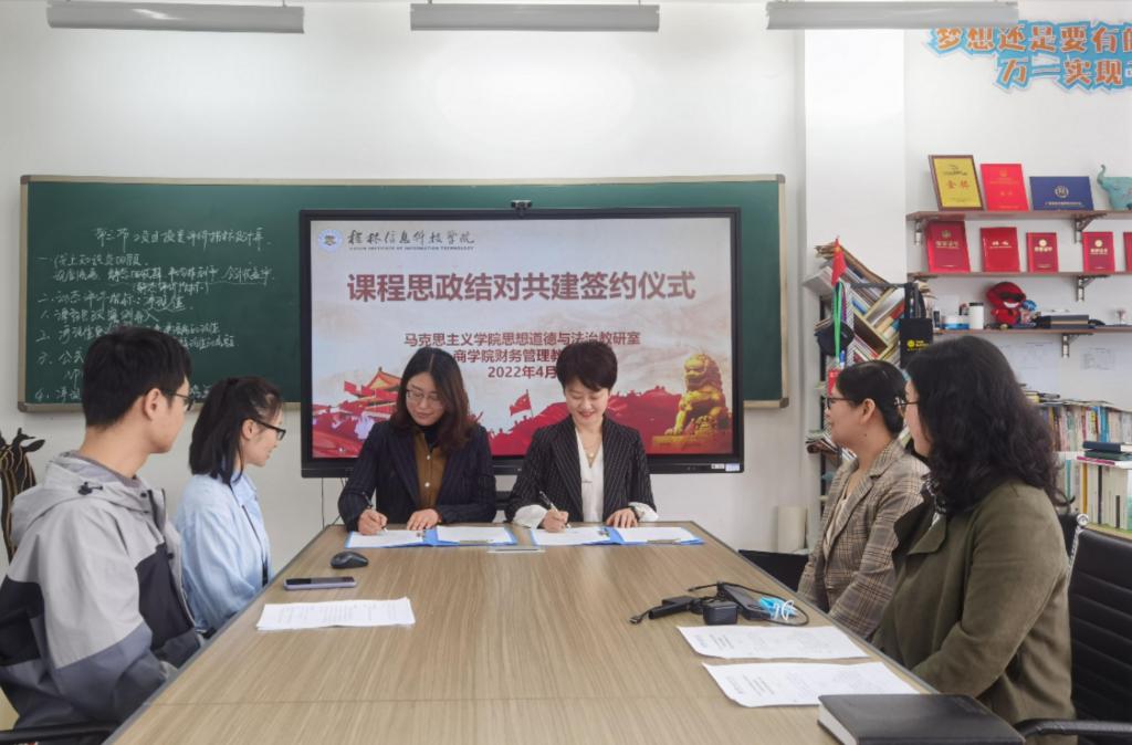 为深入贯彻教育部及纽约国际官网关于开展“三全育人”相关工作的要求,秉持以共建互助促提升发展的结对原则,4月21日上午,商学院财务管理教研室与马克思主义学院思想道德与法治教研室举行了“课程思政”结对共建揭牌和签约仪式,并就共建内容及共建方式进行了深入交流。商学院严宗光院长、马克思主义学院李琳玲副院长携双方课程思政教学团队负责人、教学团队骨干参加会议,会议由财务管理教研室主任李彦庆主持。