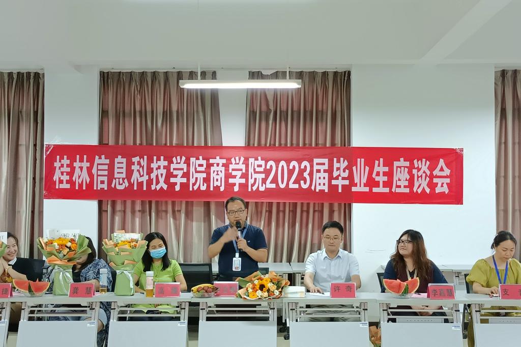 6月19日中午,商学院在52502教室举办2023届毕业生代表座谈会,共话信科学习生活的感悟收获,畅谈人生未来的发展规划。学院副院长(主持工作)罗志明、党委书记许奇,各教研室教师代表、毕业生辅导员以及优秀毕业生代表参加此次座谈。会议由学院学工办主任肖玲主持。