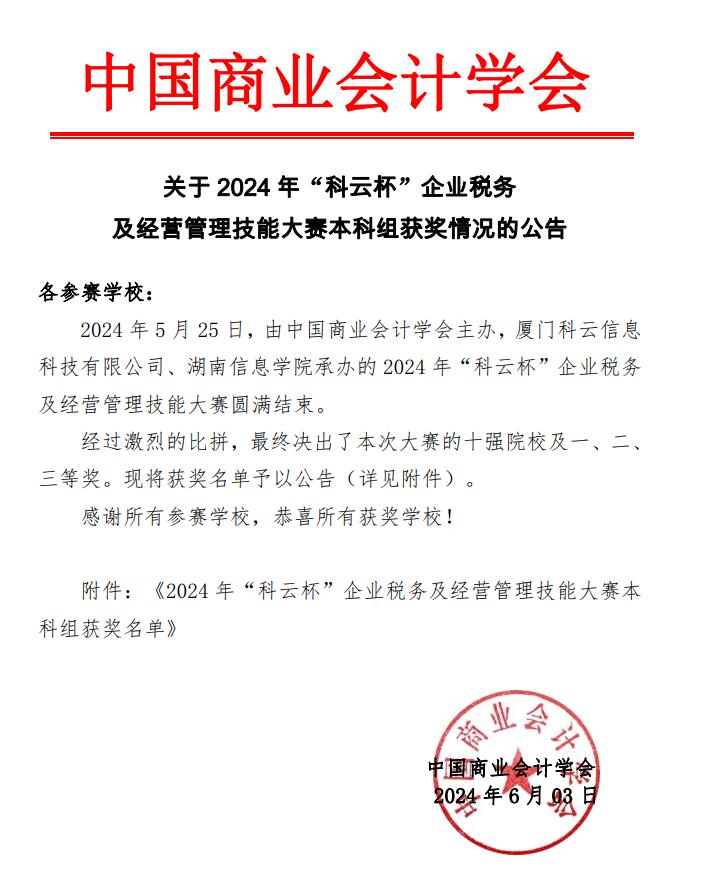 近日,由中国商业会计学会主办,厦门科云信息科技有限公司承办的2024年第九届“科云杯”全国大学生本科组财会职业能力大赛全国网络赛圆满结束!