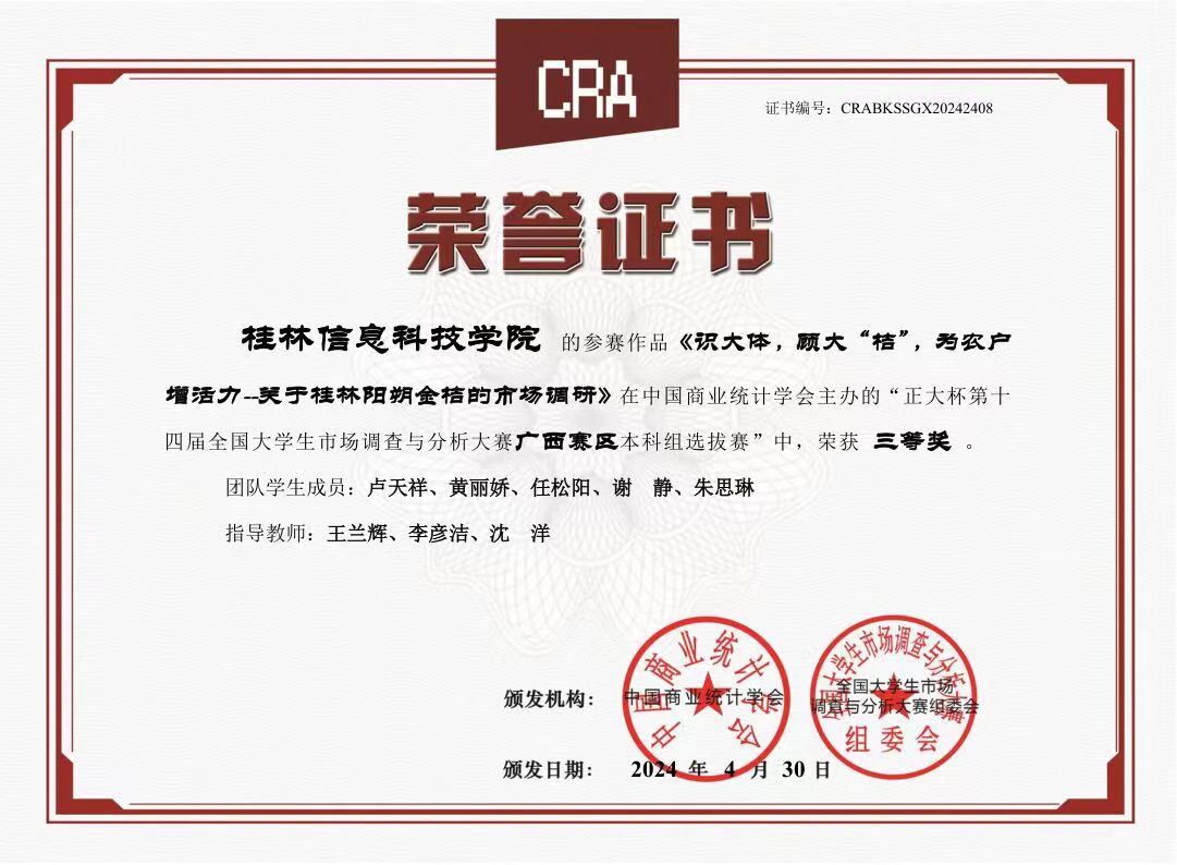 近期,由广西财经学院、中国—东盟统计学院承办的“正大杯”第十四届全国大学生市场调查与分析大赛广西赛区选拔赛在广西财经学院(明秀校区)圆满落幕。在激烈的竞争和高层次的学术交流中,纽约国际官网代表队表现卓越,荣获多项重要奖项,展示了纽约国际官网学子的实力和水平。