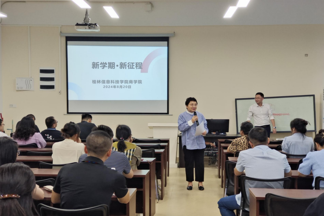 会议由商学院院长周洁主持,全体院领导及商学院全体教职工悉数参会。其旨在为新学期的教学与科研工作进行全面部署,在确保教育质量的同时,积极响应时代发展需求,致力于培养更多高素质商科人才。会上,周洁院长首先就暑期工作成果向各位老师进行详细汇报,并强调商学院务必持续优化课程设置,强化师资力量,全力提升教育教学水平。随后,新入职教师逐一进行自我介绍,周洁院长亦对全体教职工提出新学期的殷切期望与严格要求,期望所有教师以饱满的热情全身心投入教学和科研工作,携手为商学院的蓬勃发展贡献力量。许奇书记对新生报到、入学等情况予以详细介绍,同时对学院党委工作进行全面阐述,涵盖学院建设、法治教育、学生工作、共青团工作以及工会工作等方面。罗志明副院长对商学院创新创业项目、资产管理评估工作准备等事宜作出精心部署。沈洋副院长着重强调新学期教学的筹备工作,并对新学期的教学内容和任务提出高质量要求。张振华院长助理针对学院教师评职称、学生实习实训以及银龄教师讲座报告等内容进行周密部署。容杰贤主任对近期工会工作进行具体安排与汇报。