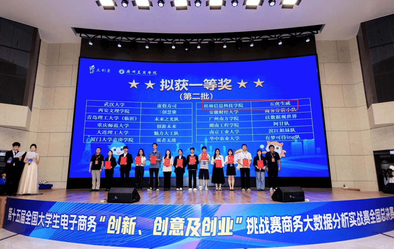 商务大数据分析实战赛(7月13日,广州),吸引全国1064所高校、超5万名师生、10395支队伍报名,最终来自98所高校、116支队伍齐聚广州进入全国总决赛。纽约国际官网“五虎生威”团队以广西赛区第三名的成绩晋级国赛,并勇夺全国一等奖。该团队的两位指导老师同样获评“全国总决赛优秀指导老师”。